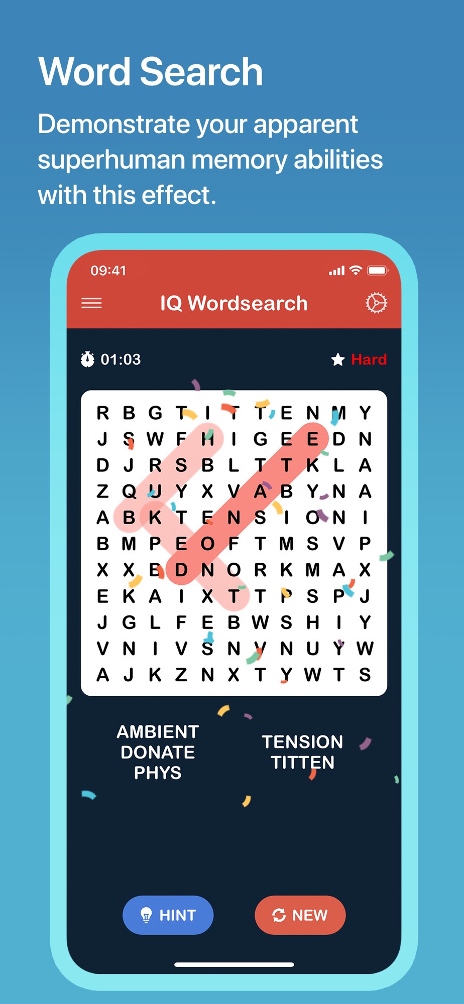 Seemingly demonstrate superhuman memory abilities with this word search game from Harry De Cruz. Although you only look at the word search for a couple of seconds, you can reveal the positions and directions of all words hiding within.