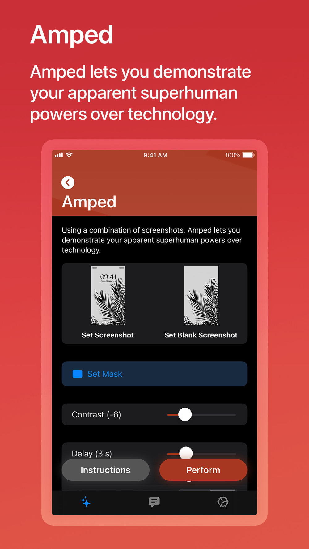 Using a combination of screenshots, Amped lets you demonstrate your apparent superhuman powers over technology.