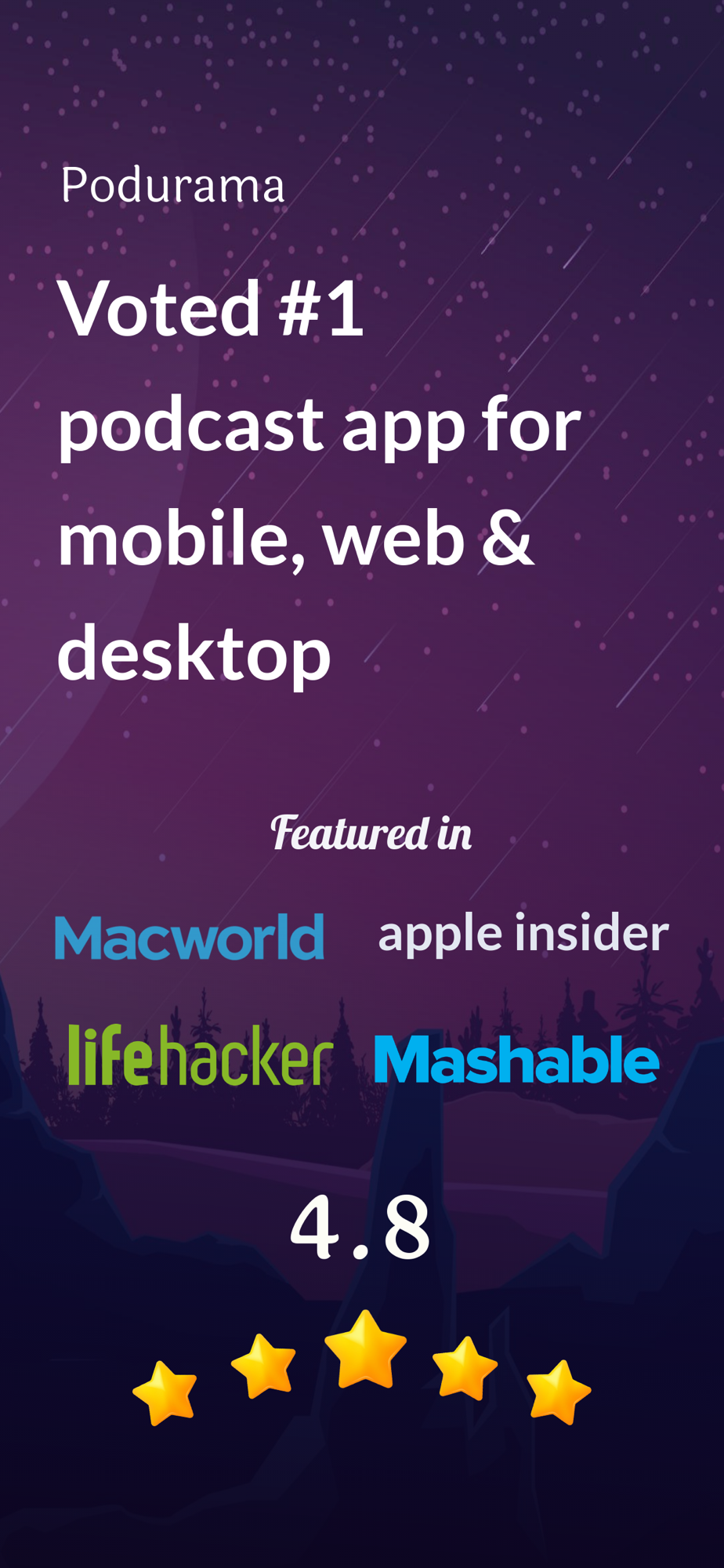 Podurama is the best free Podcast player for mobile, tablet, MacOS and web with no ads.