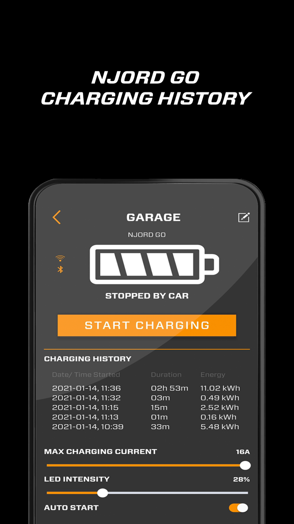 The CTEK APP gives you total control over how and when you charge your EV with your NJORD® GO. Simply connect it to the app over BLUETOOTH® or Wi-Fi and you can: