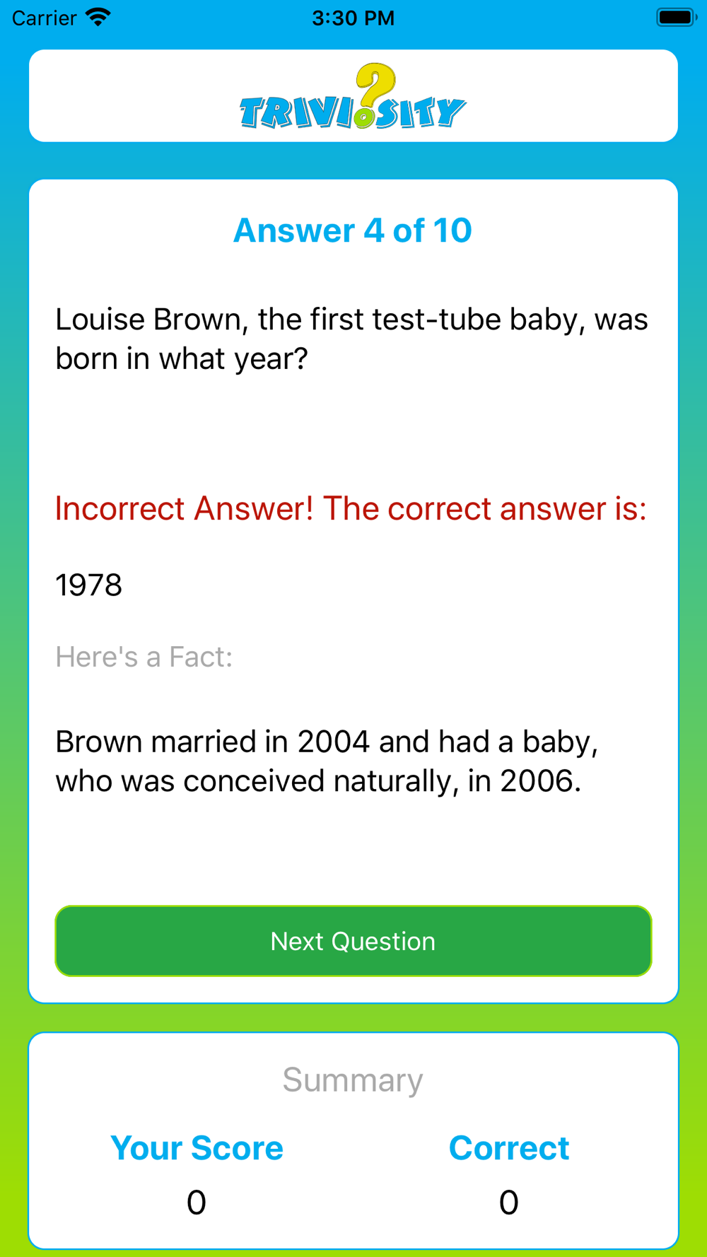Triviosity is a quick 10 question trivia game that you can play every day. Challenge yourself, challenge your friends.