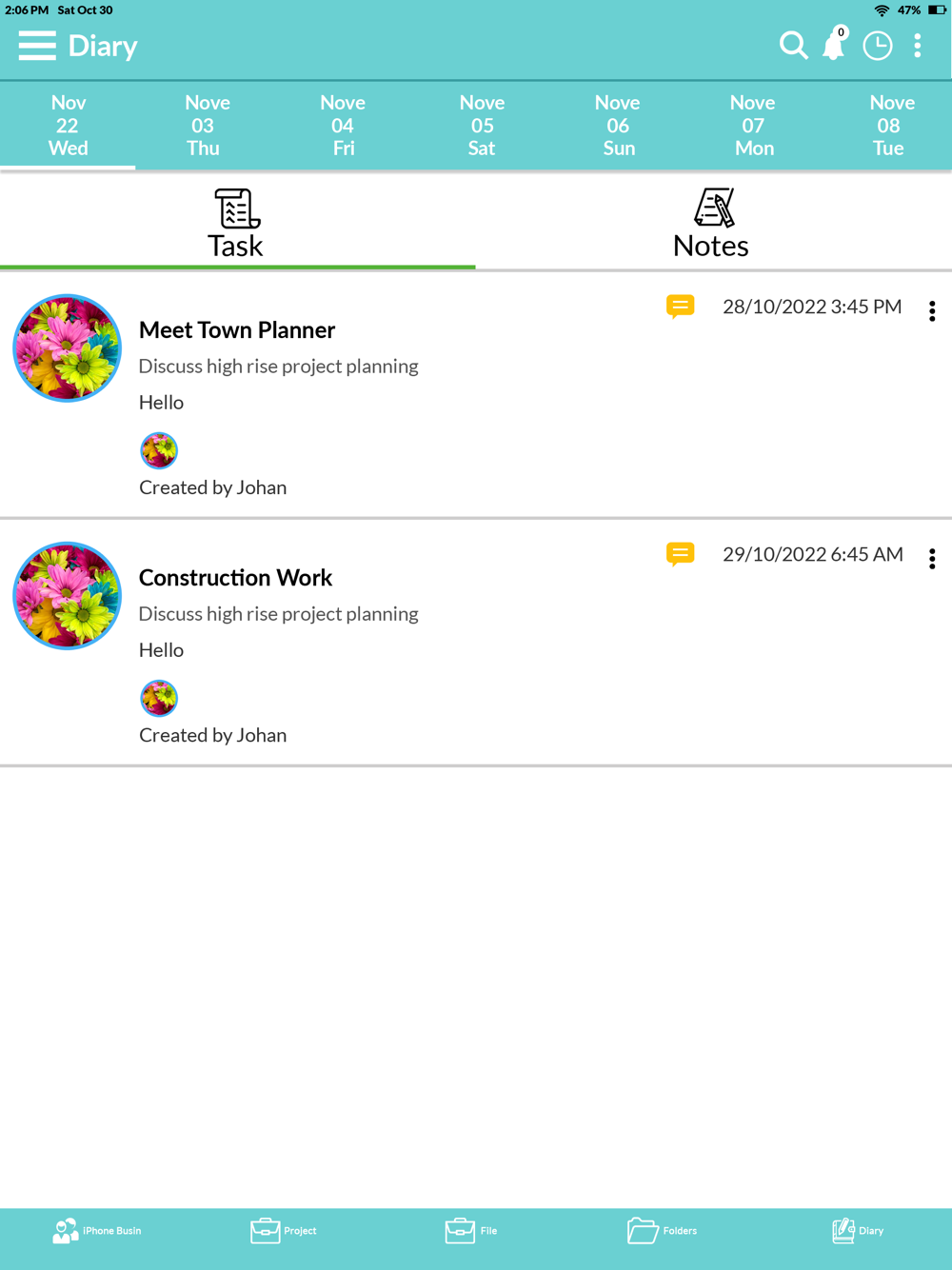 Task & Note entry includes camera, video recording, editing with voice over availability and file uploading. WOJO's Cloud based server allow entries to also be shared and assigned to various group members as required.