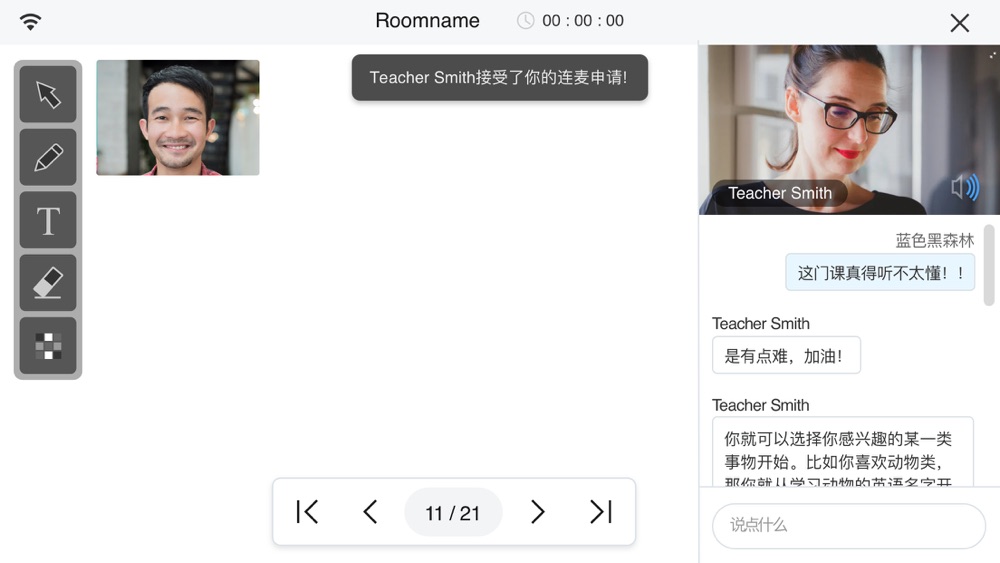 声网公益在线课堂一站式解决方案覆盖各种在线教育场景和运用功能,包括互动白板,实时音视频,实时聊天,播放视频课件,实时录制,标准的界面交互体验,为使用者提供了高效,生动的交互式在线学习服务。