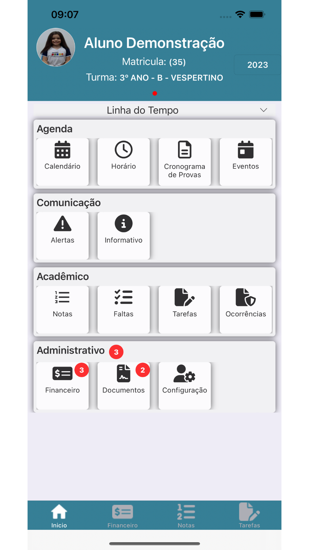 Comunicados, Notícias, Eventos, Calendário Escolar, Financeiro com emissão de Boletos, Notas, Faltas, Ocorrências, Tarefas, Conteúdos, Área exclusiva para publicações do Professor, além de uma Linha de Tempo que mostra os próximos eventos são funções encontradas neste aplicativo.