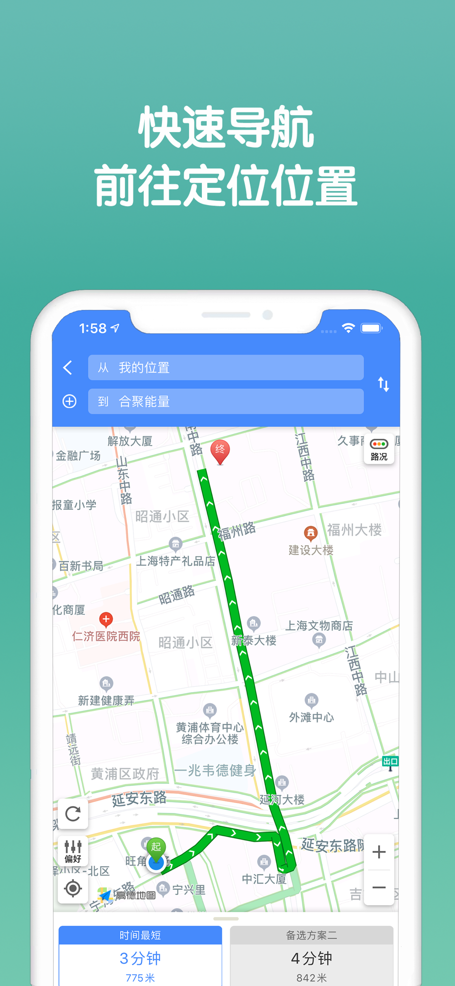 本软件提供基础定位功能和导航功能。在3D地图显示定位结果