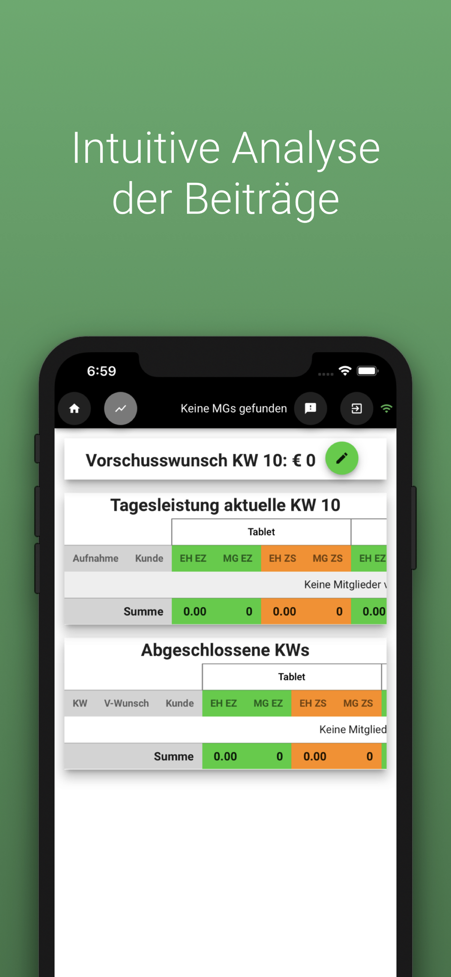 - schnelle und intuitive Analyse der bereits eingetragenen Mitgliedsbeiträge