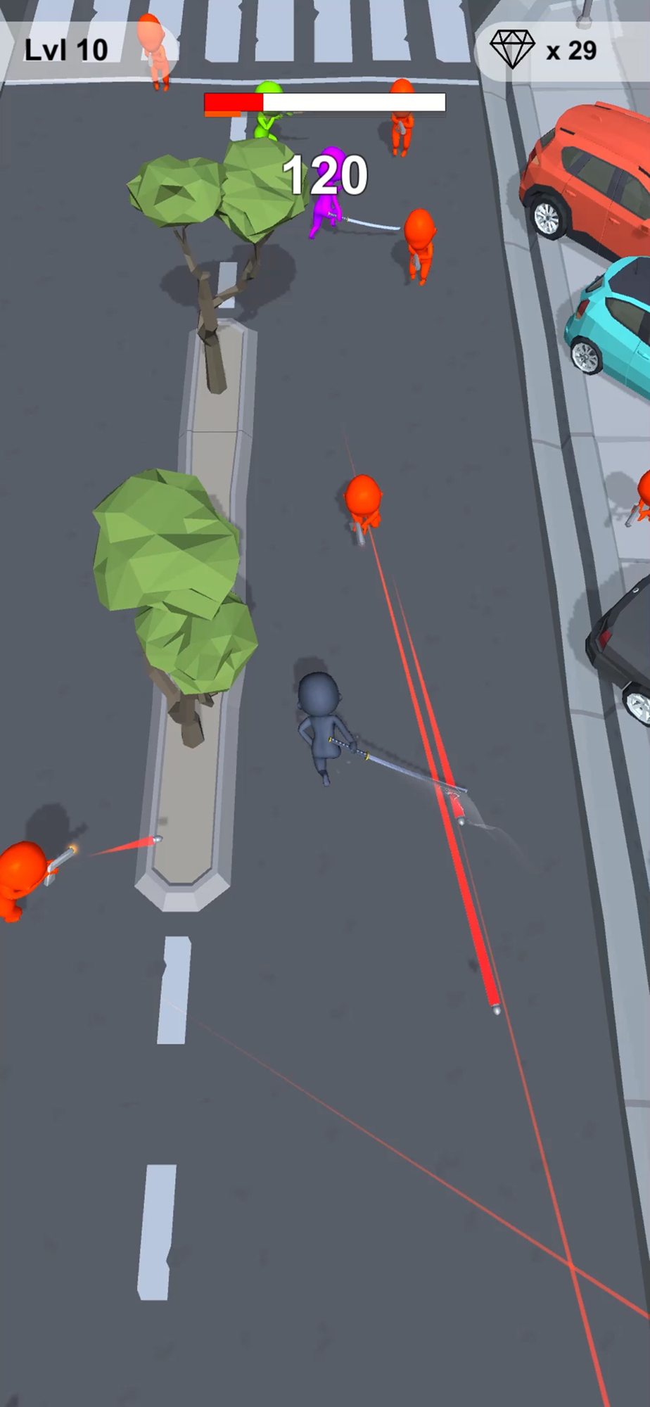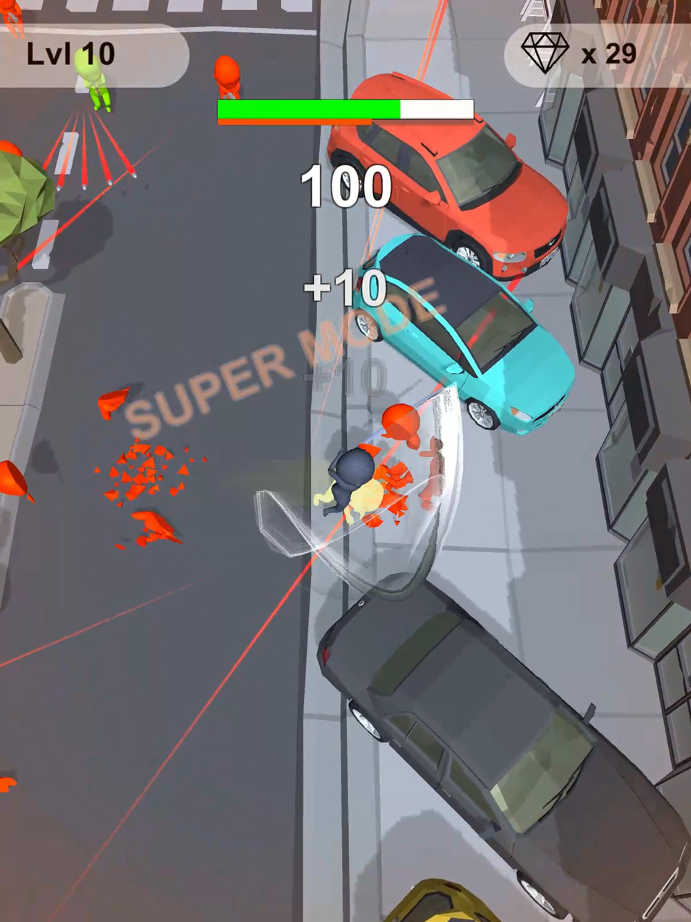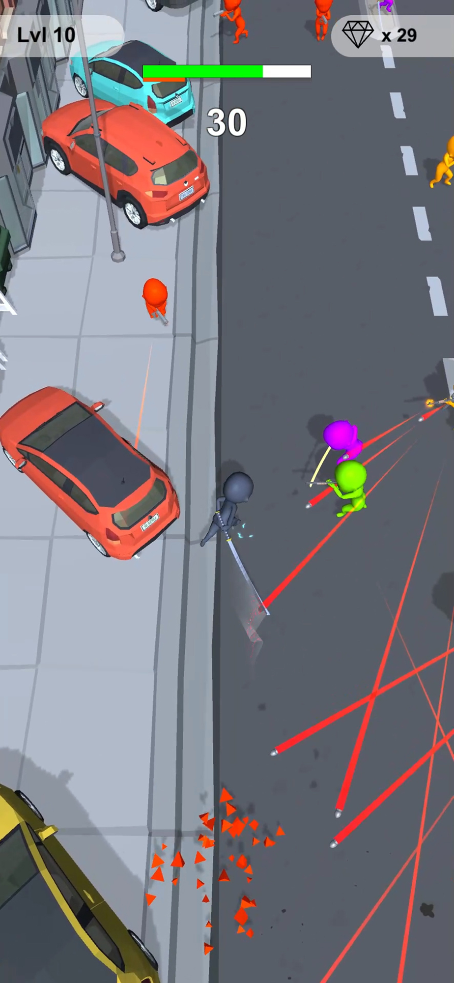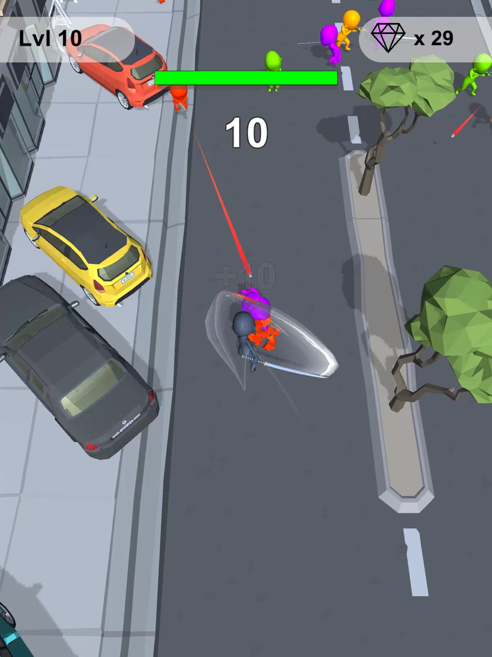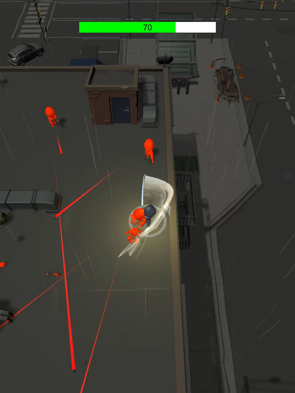 Control ninja around, dodge bullets and slide through all enemies.