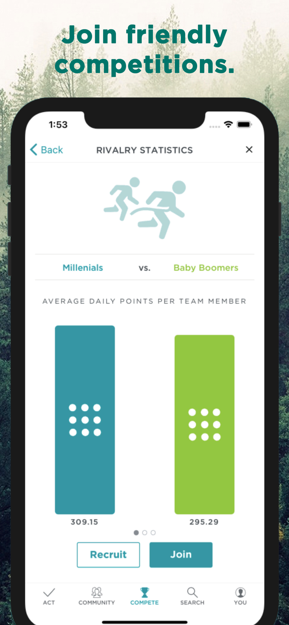 REWARDING. Every action you take earns points, and when you’ve earned enough points, a real tree will be planted. Every action you take sets an example for others to follow. Join a team and every action you take contributes to the team’s total and helps it win rivalries with other teams. Through all these things, you earn the most important reward of all: knowing that you’re doing your part to save our planet.