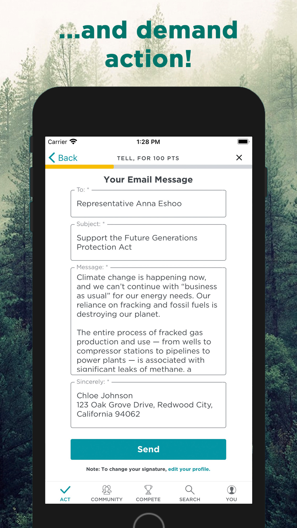 IMPACTFUL. Climate Action Now gives you, whether you are a concerned citizen or a hard-core climate activist, the means to take thousands of individual, collective, and systemic actions NOW. To date, app users have sent over one MILLION messages and planted over 47,000 trees. You can send an impactful message in seconds.