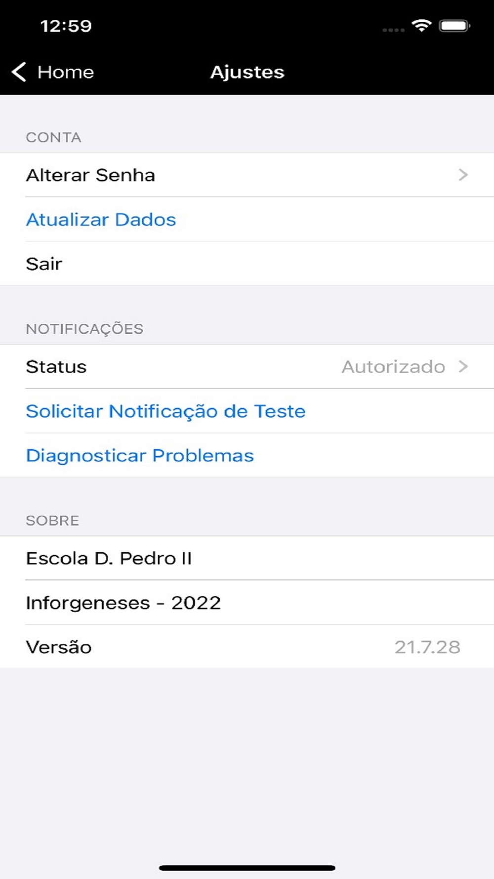 Aplicativo para acesso dos alunos e pais da Escola D. Pedro II.