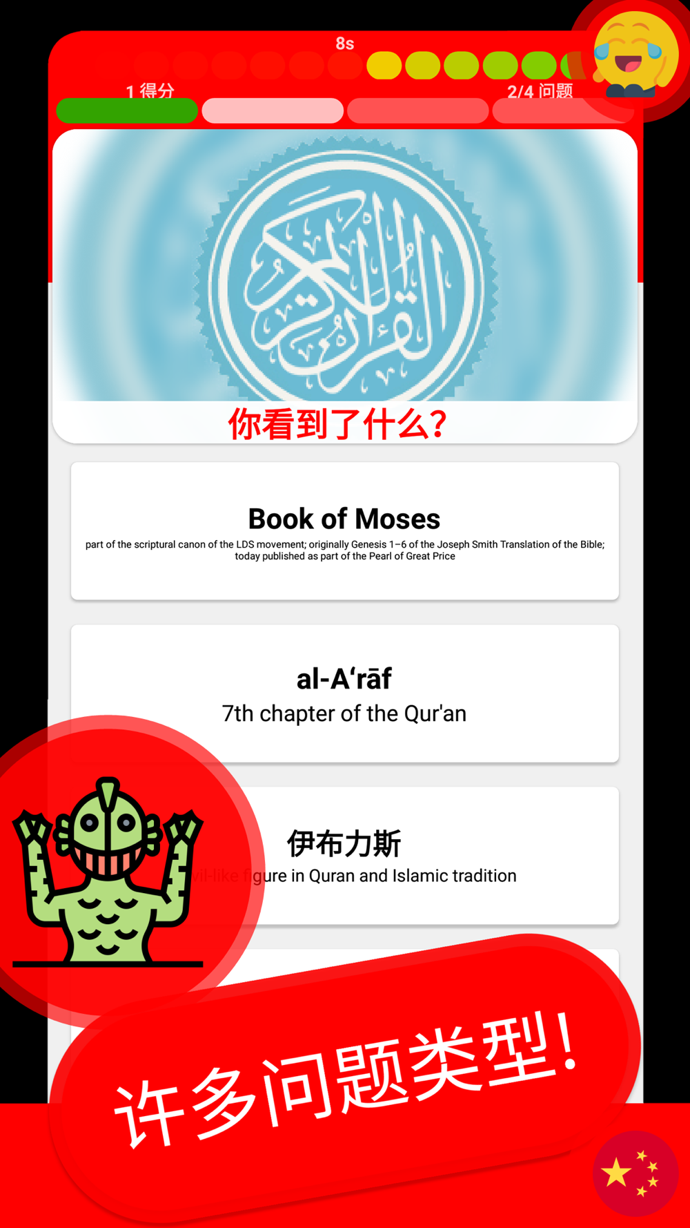 “评价 & 都市传说 & 令人毛骨悚然的故事 测验 中国”不仅是一个简单的评价问答应用程序,而且还是一个很棒的评价百科全书。在回答问答题时,您会学到很多关于都市传说的知识!升级到新的水平!