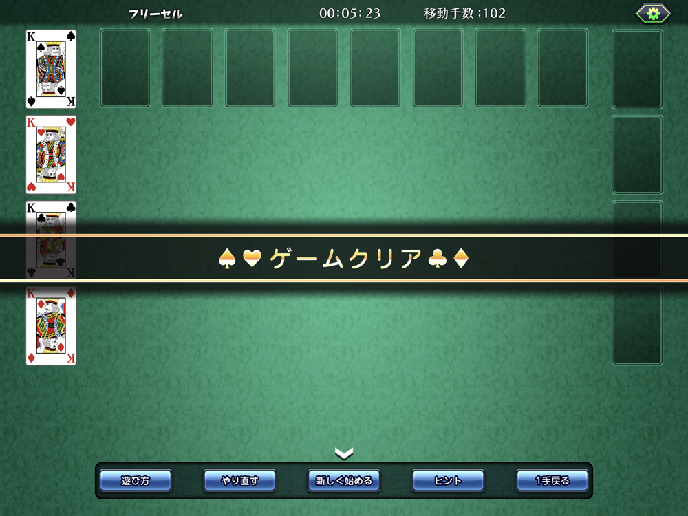 ・一度に移動できるカードはフリーセルや場の空き具合によって制限される