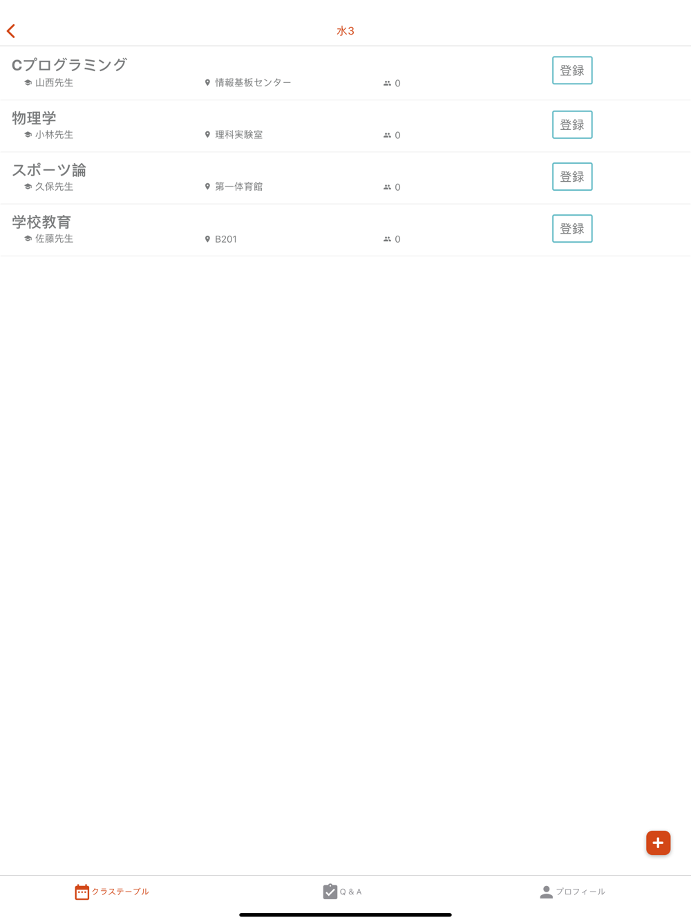 同じ学校、同じ学部の中で誰かが作成した授業を登録することができます。