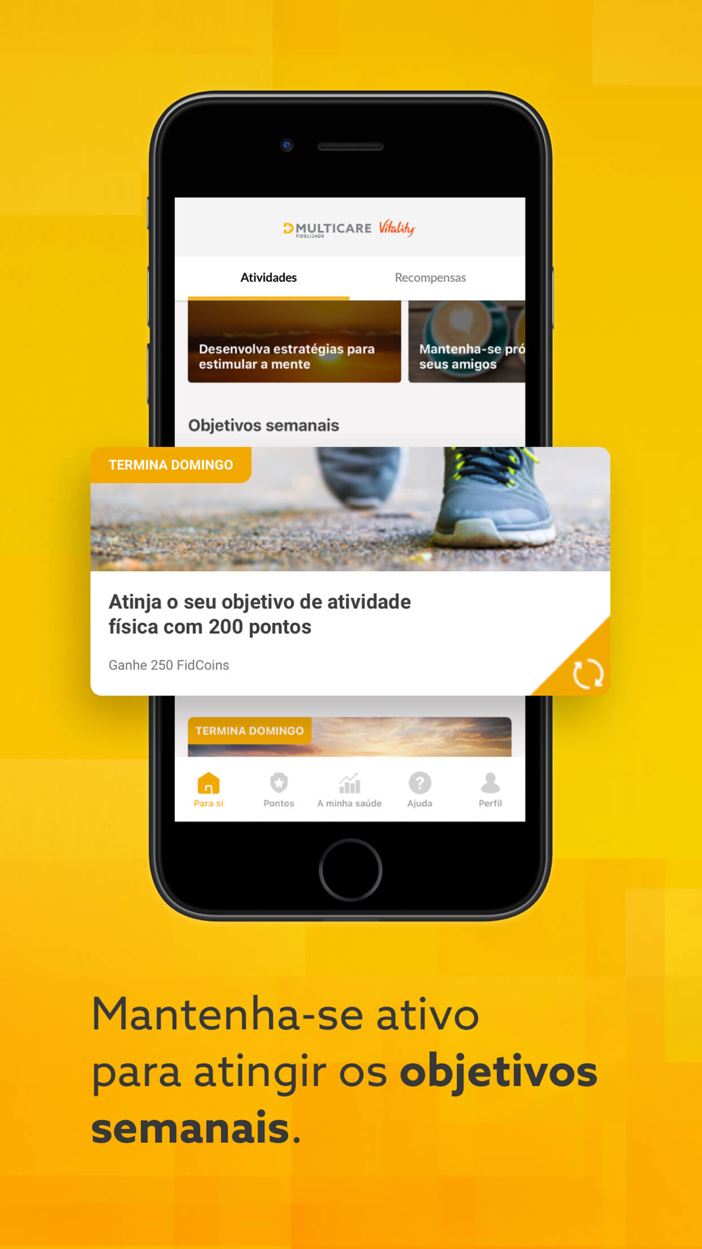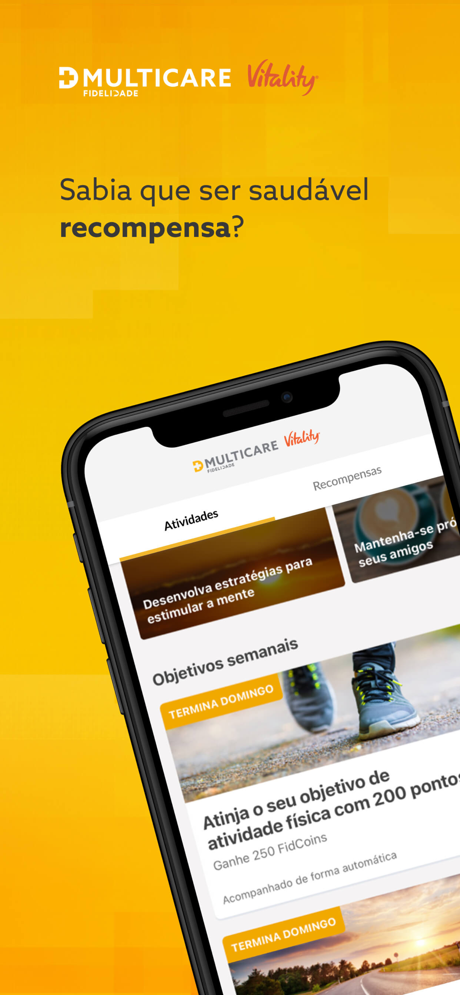 Se tiver um seguro de saúde Multicare ou um seguro de Vida Fidelidade elegível, descarregue a App Multicare Vitality. Mexa-se mais, adote hábitos de vida saudáveis e comece a acumular benefícios, uns atrás dos outros.