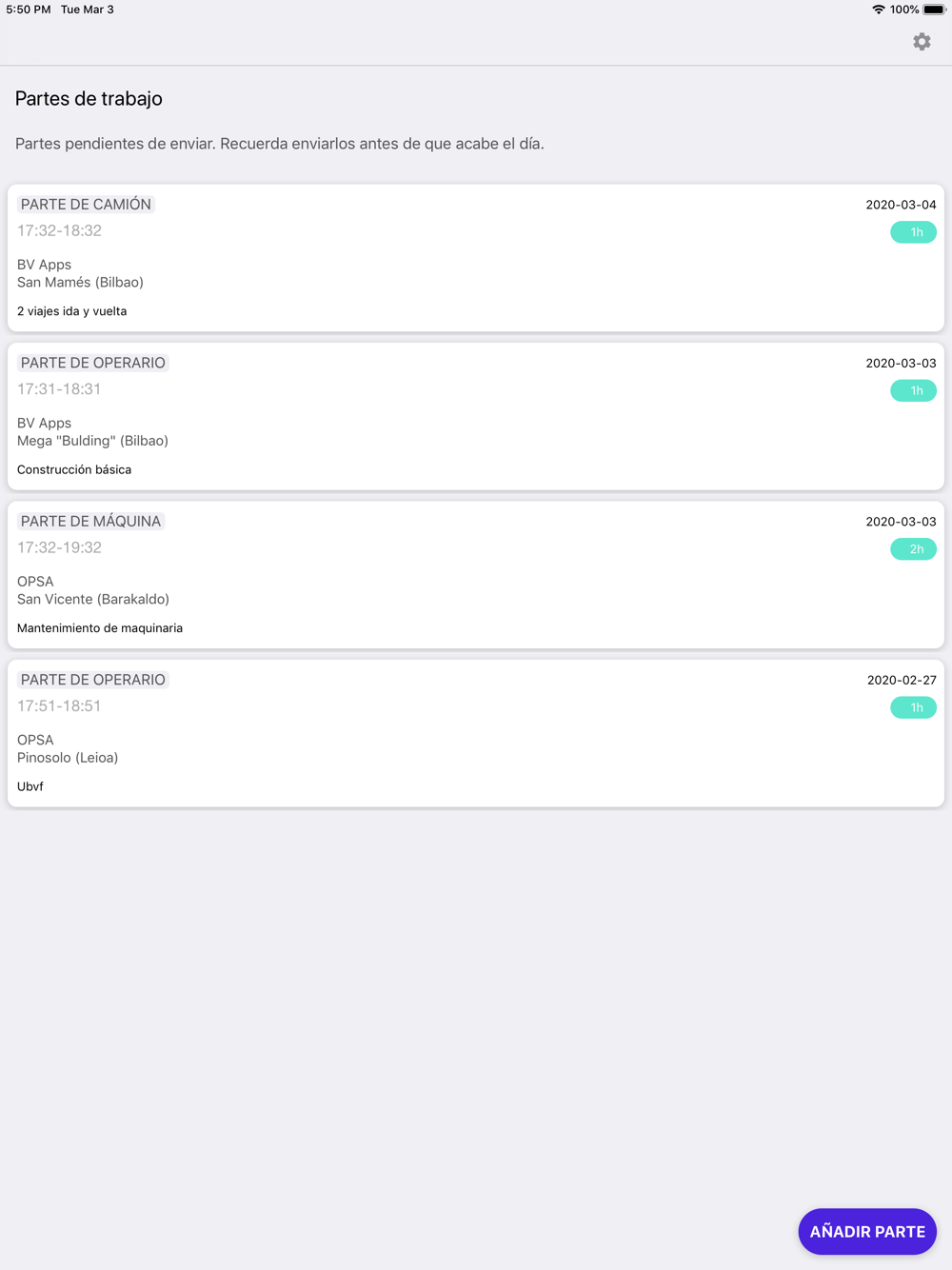 Facilita la gestión de los partes de trabajo de diferentes tipos de operarios en el sector de la excavación. Permitiendo a las empresas acceder a toda la información a tiempo real y obtener todos los partes de trabajo de los empleados al finalizar la jornada.