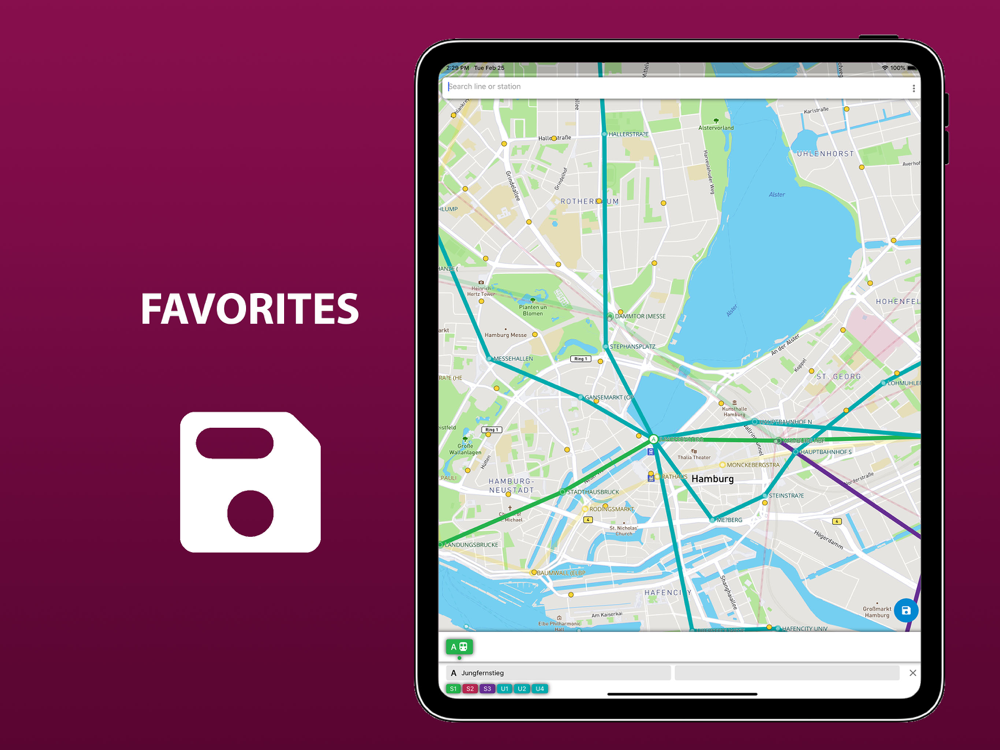 The entire Hamburg's transport infrastructure of in one app. Metro lines, trams and buses routes, transfer stations - all of those you will find inside.