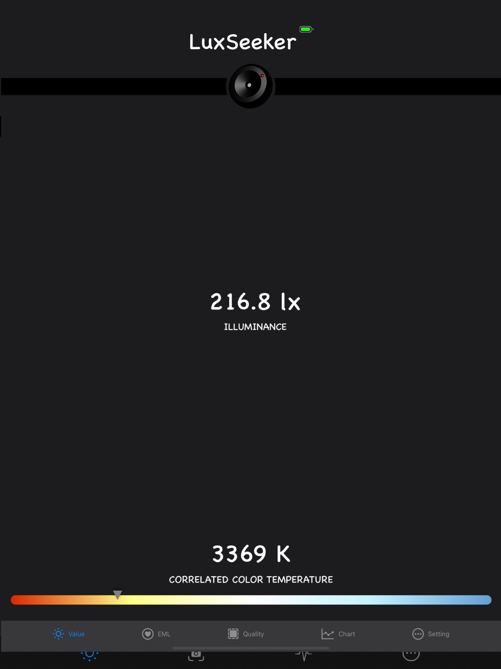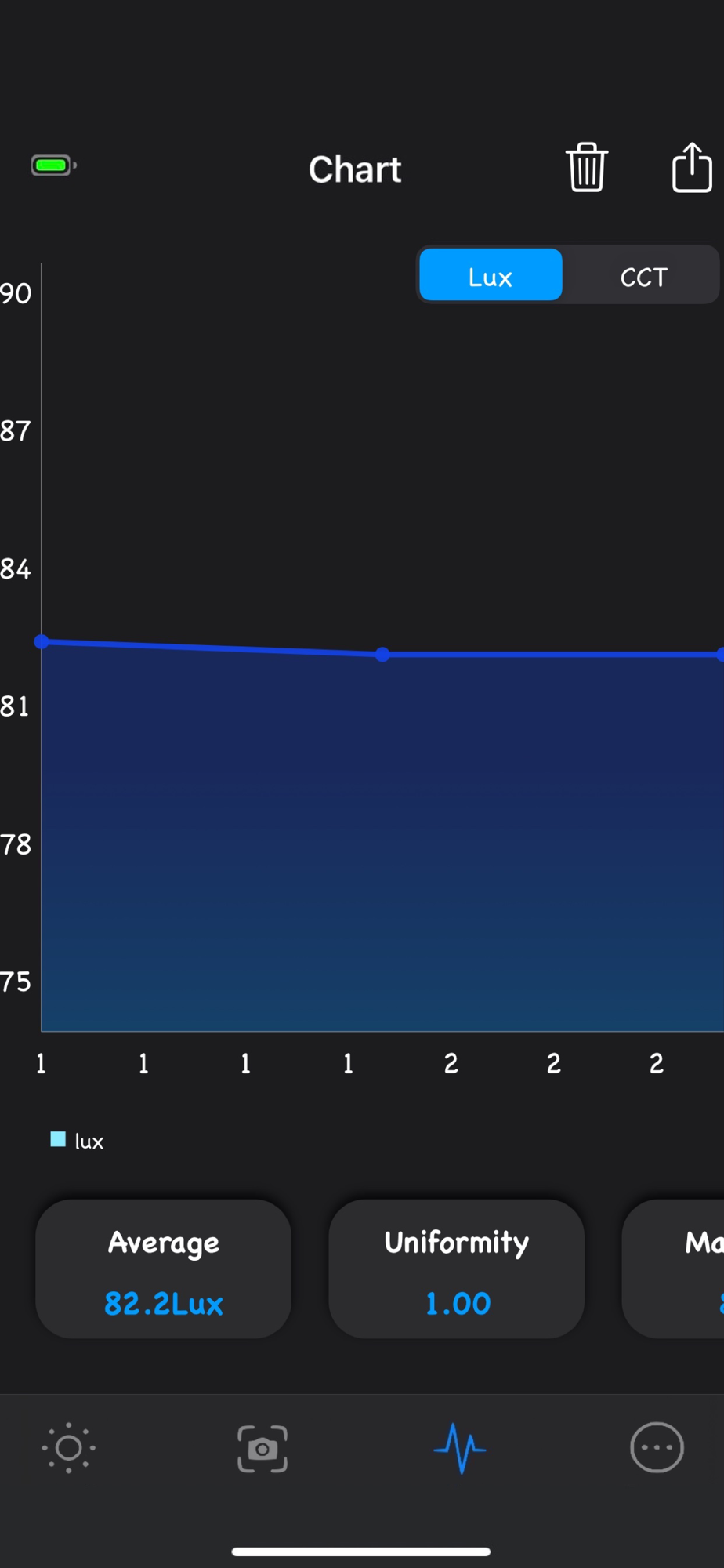 - Real-time measurement illuminance (lx) and color temperature (CCT)