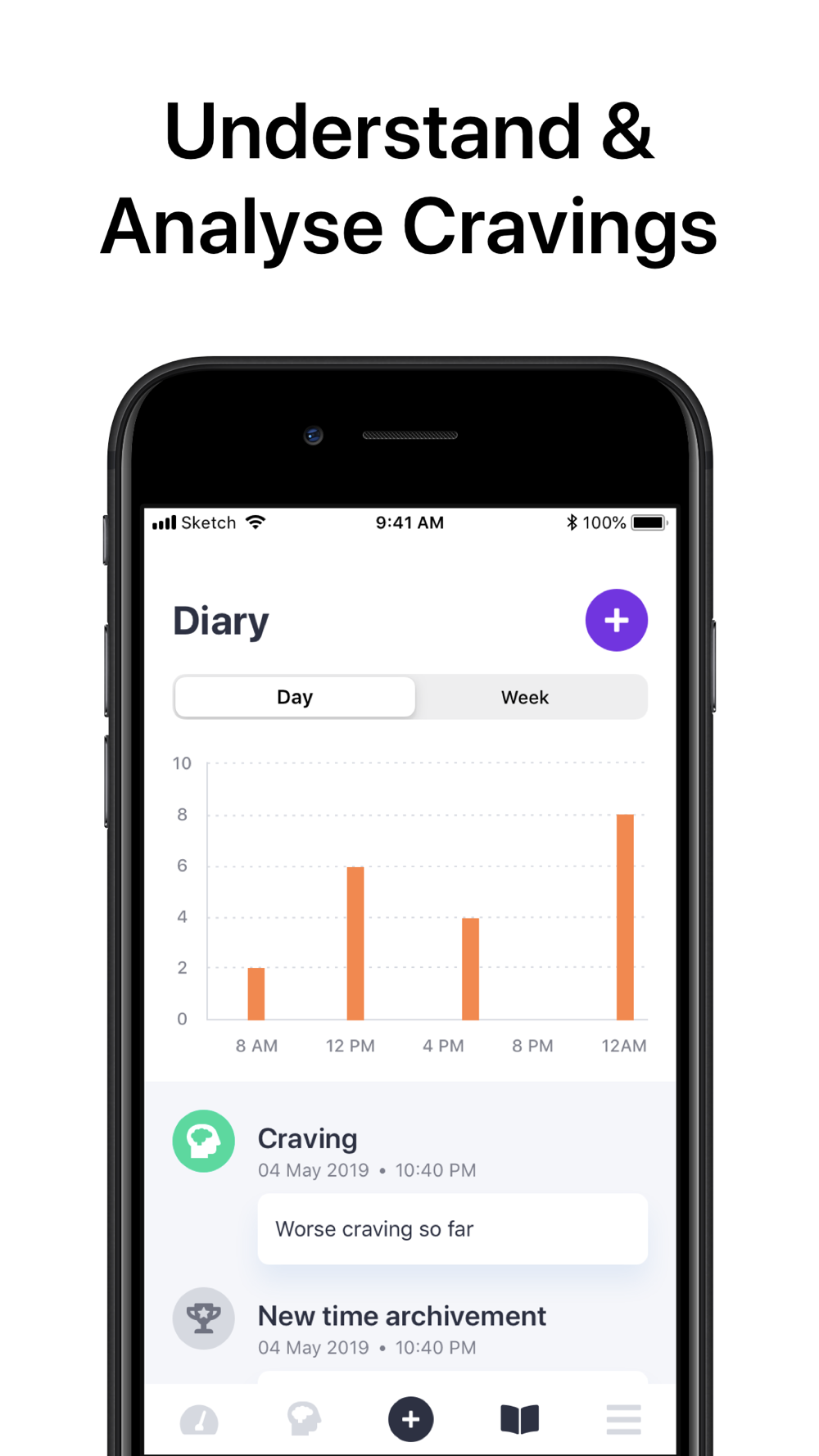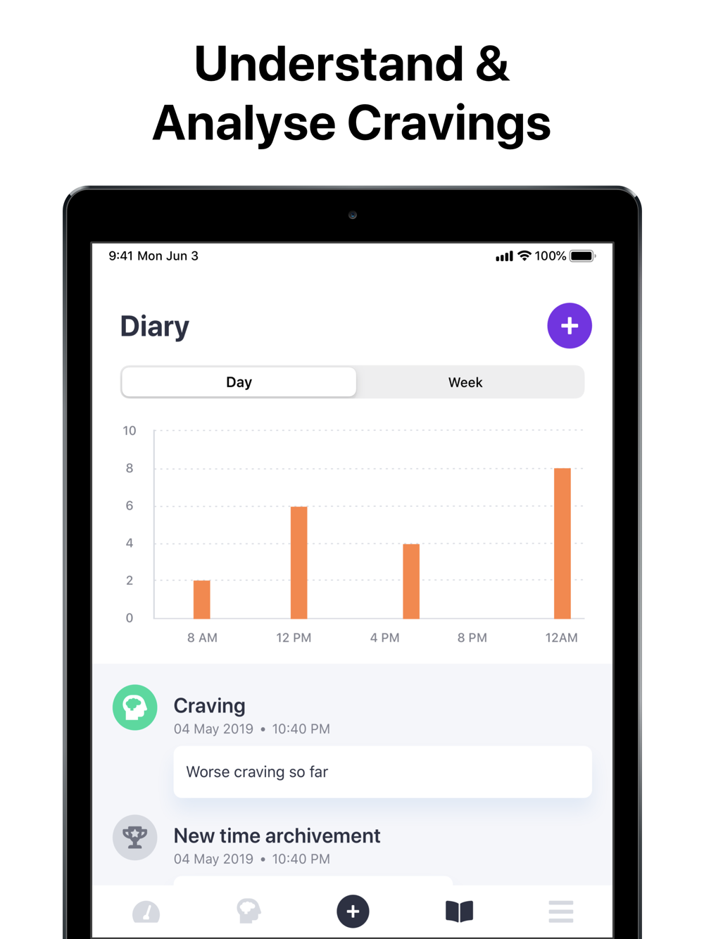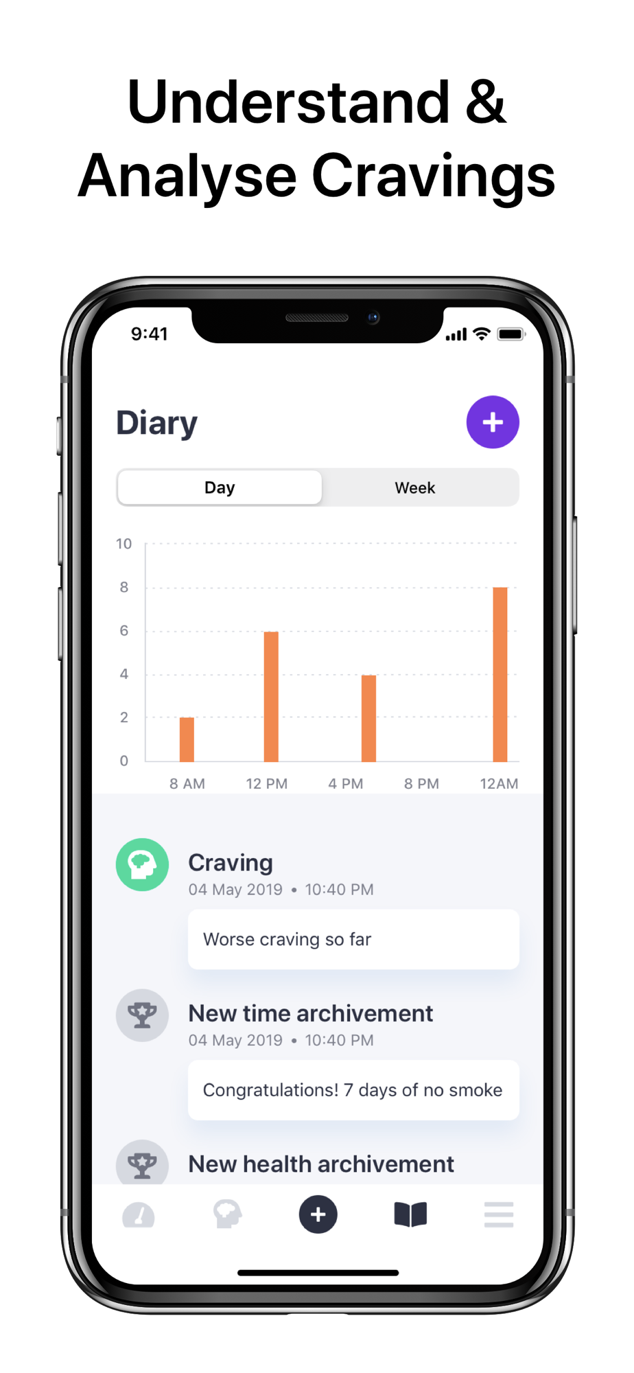 Log your cravings and get tips for managing them, plus insights into craving patterns that will help you to identify craving triggers and help you to monitor your overall progression.