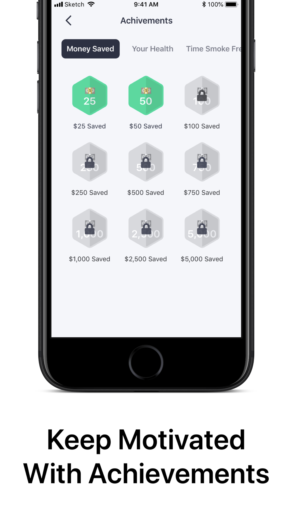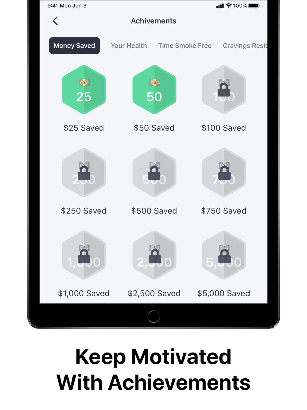 Keep motivated as you progress through health, money saved, time smoke free, cigarettes not smoked and cravings resisted achievements. Each achievement is marked with a quirky and vibrant illustration, with over 60 achievements to unlock! The health indicators are based on World Health Organization (WHO) data.