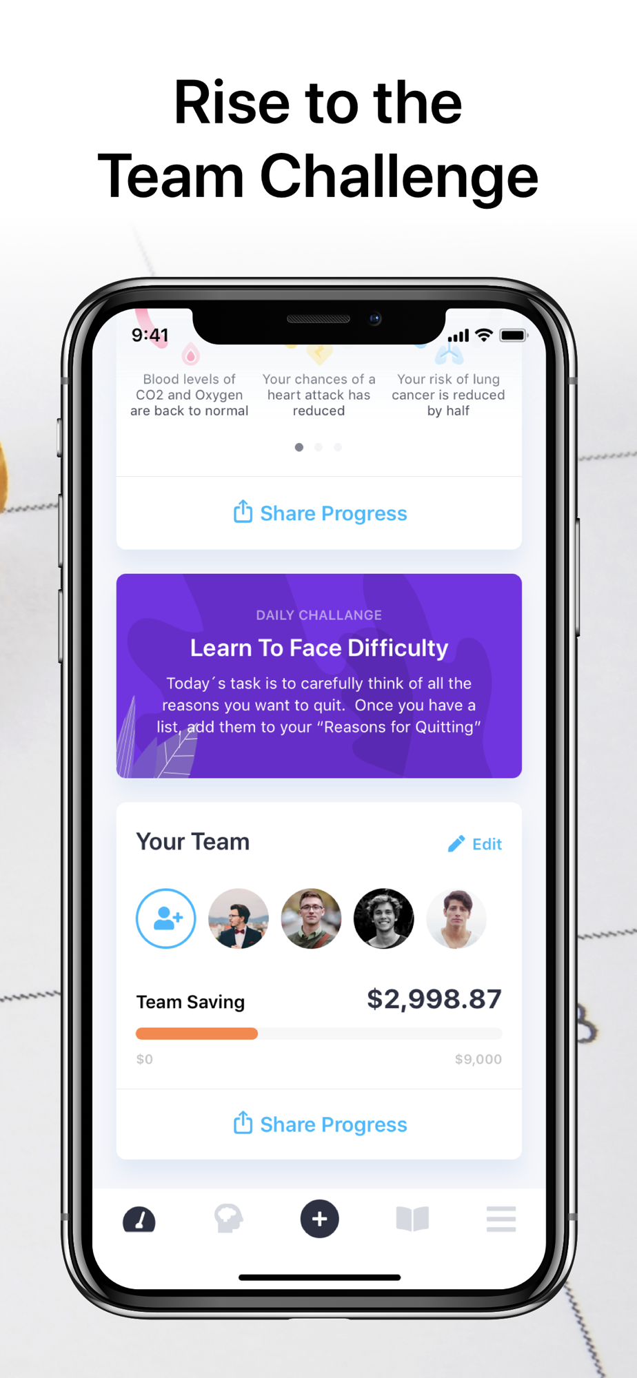 Quitting smoking with friends and family has been said to more than double your success rate of never smoking again. Our team feature gives you the option to quickly and easily create a quit smoking team. And what makes it more exciting, it includes a team money saving tracker. You will be shocked to learn how quickly you and your team can save enough money for that dream holiday to the Caribbean!