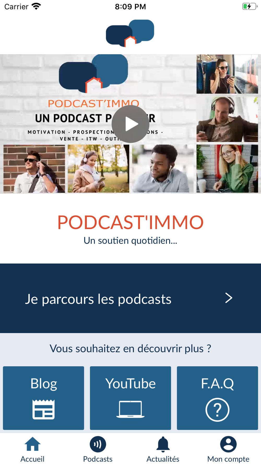 Podcast’immo met à la disposition des agents et mandataires immobiliers un podcast par jour. Un outil simple et puissant pour accompagner quotidiennement des hommes et des femmes qui on choisit de devenir de véritables entrepreneurs. Indépendants ils exercent leur métier avec passion le plus souvent sans réelle structure. C’est donc dans un contexte particulier, parfois de chez eux, sans frontière visible entre leur vie personnelle et professionnelle, qu’ils doivent agencer leur espace de travail, planifier leur agenda, organiser leur journée, maintenir leurs objectifs et effectuer un ensemble de tâches pour de nombreux clients, sans garantie réelle que chacune d’entre elles sera rémunérées. La solitude est souvent leur pire ennemi, Podcast’immo se propose de partager quotidiennement, avec eux, une idée, une réflexion ou une astuce en rapport avec leur métier : Techniques de ventes, relations vendeurs, relations acquéreurs, prospection, inter autant de sujets qui seront abordés sans tabou. Un seul objectif faire en sorte qu’ils se sentent moins seuls et qu’au travers de la motivation et de l'épanouissement de chacun, les particuliers puissent enfin poser un nouveau regard sur leur profession