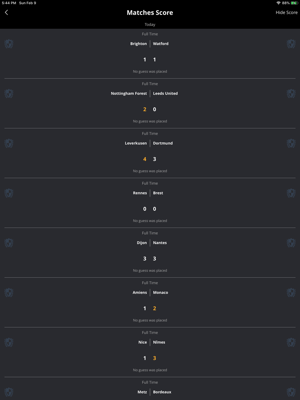 - Guess match score