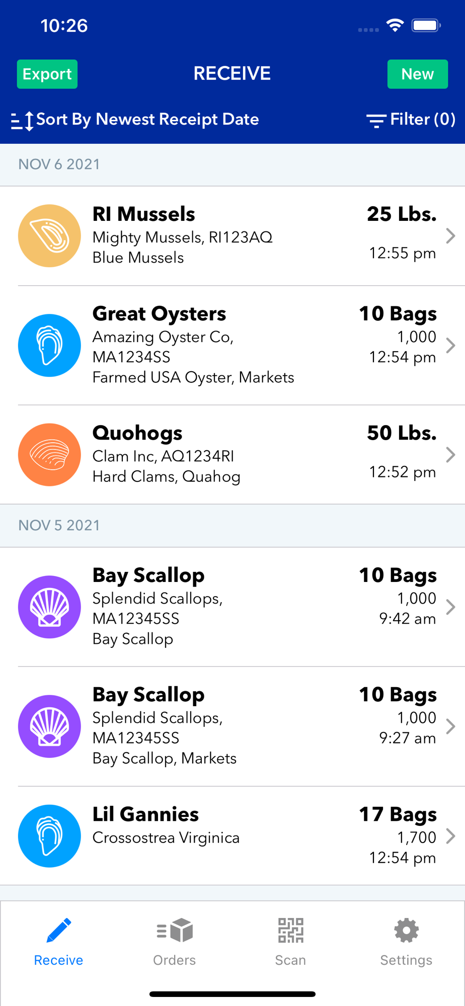 If you are a shellfish distributor, you know that filling out receiving logs, and producing dealer tags and attaching them to bags of shellfish for sale is time consuming and expensive. The BlueTrace Distributor app is your solution to handling the process of receiving and tagging your inventory.