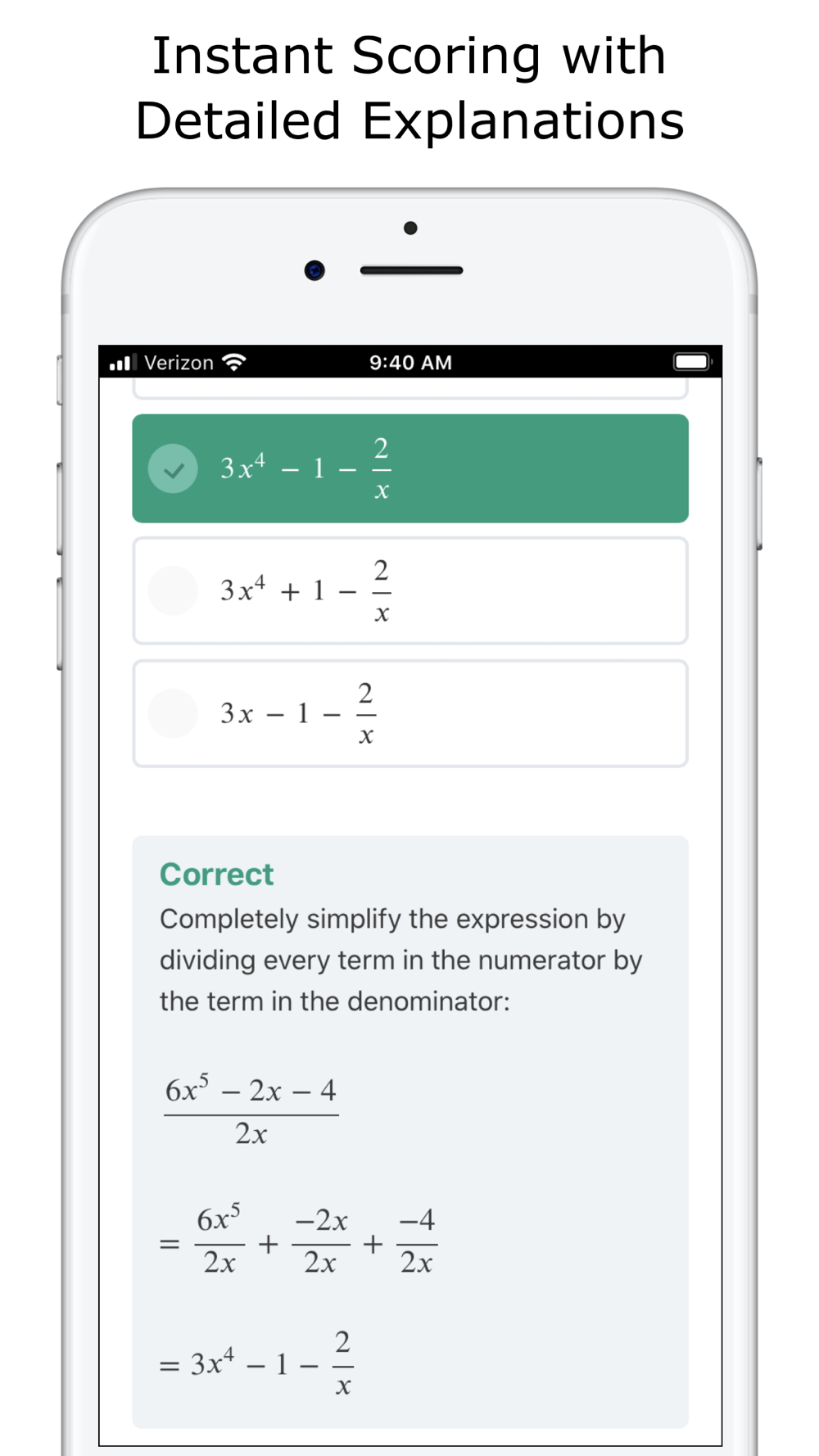 We offer all of this amazing test prep material in a user-friendly app that is simple to navigate. Detailed explanations are provided for every question, clearly showing you how to get the correct answers.