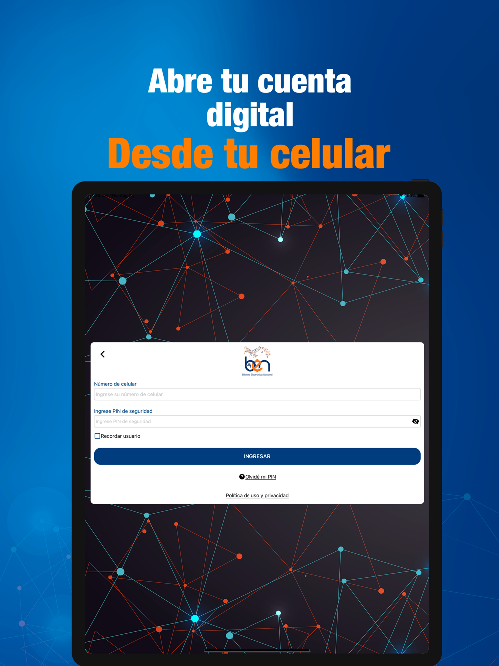 - Recibir y enviar dinero a otras cuentas BEN en todo el país.