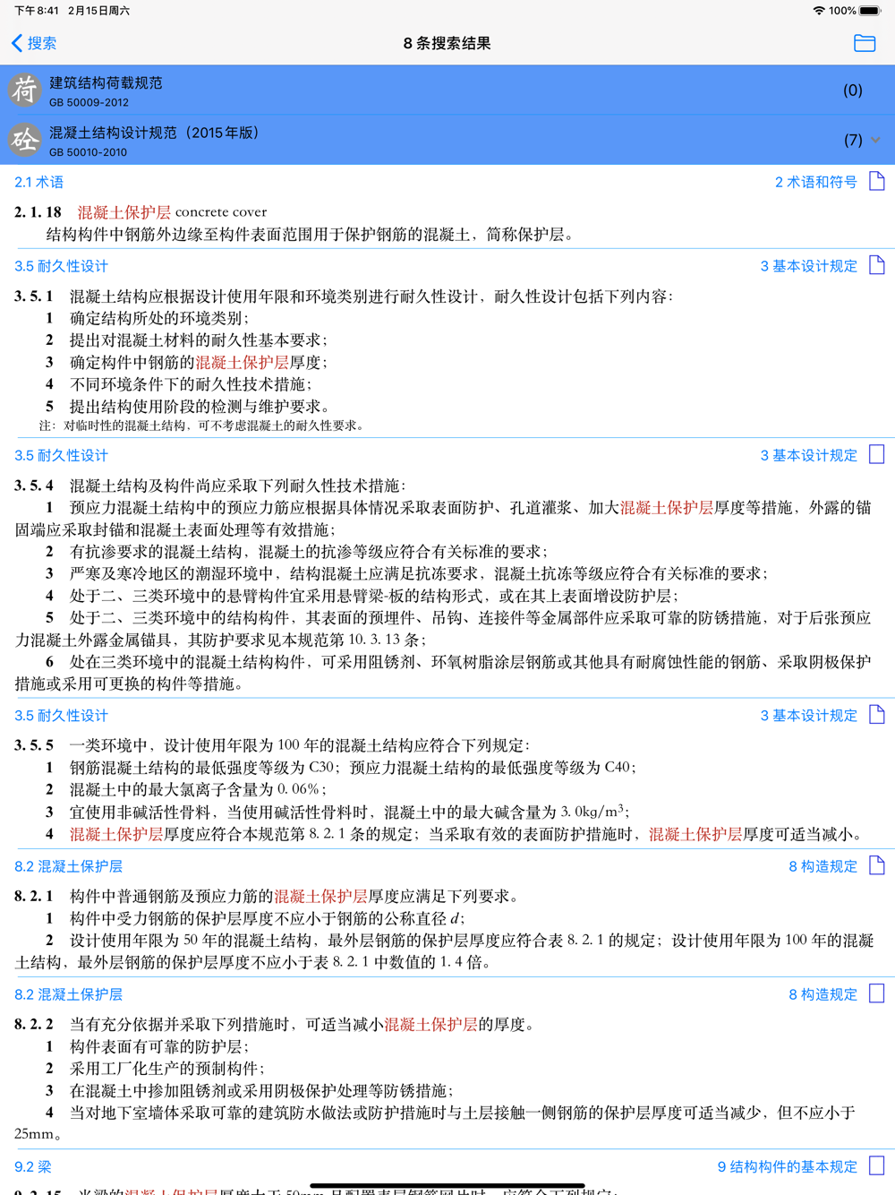 【注意】本App的规范条文不含公式以及图表。如果需要,可查询到具体条文序号后,再翻看纸质规范或者PDF版规范电子文档。