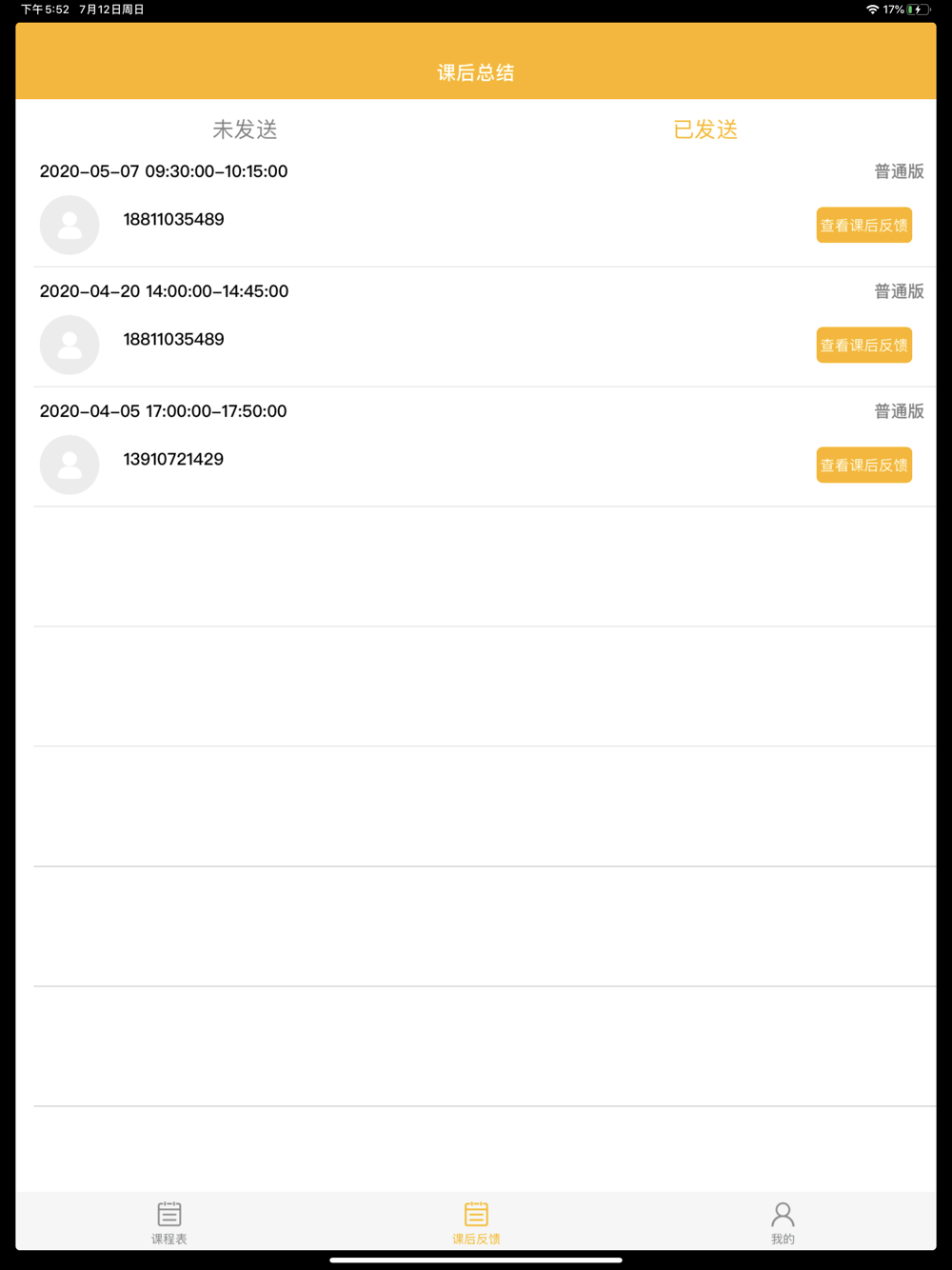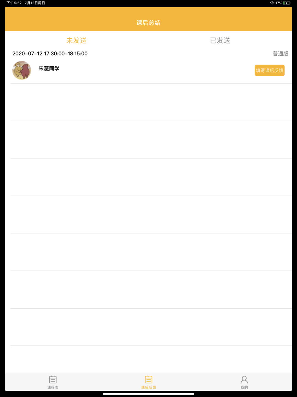 老师端根据学生选课的情况按时进入课堂进行一对一授课,并填写课后反馈单。