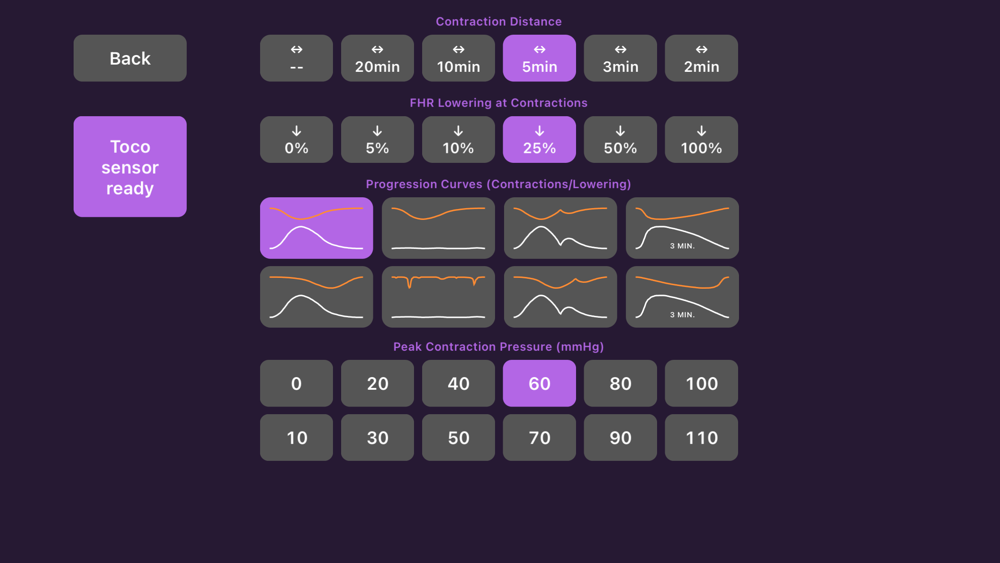 • Realistic graphic labor / heart rate display for the last 5, 15 or 30 minutes