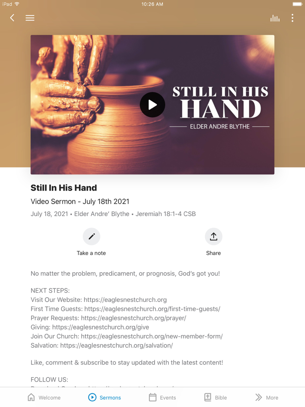 Stay up-to-date with the latest news, sermons, and events happening at The Nest.