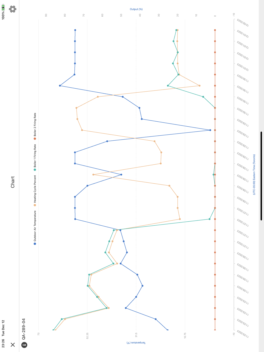 - Dashboard includes status of all heating calls, boiler targets, sensor inputs, boiler outputs, and boiler run time and cycles