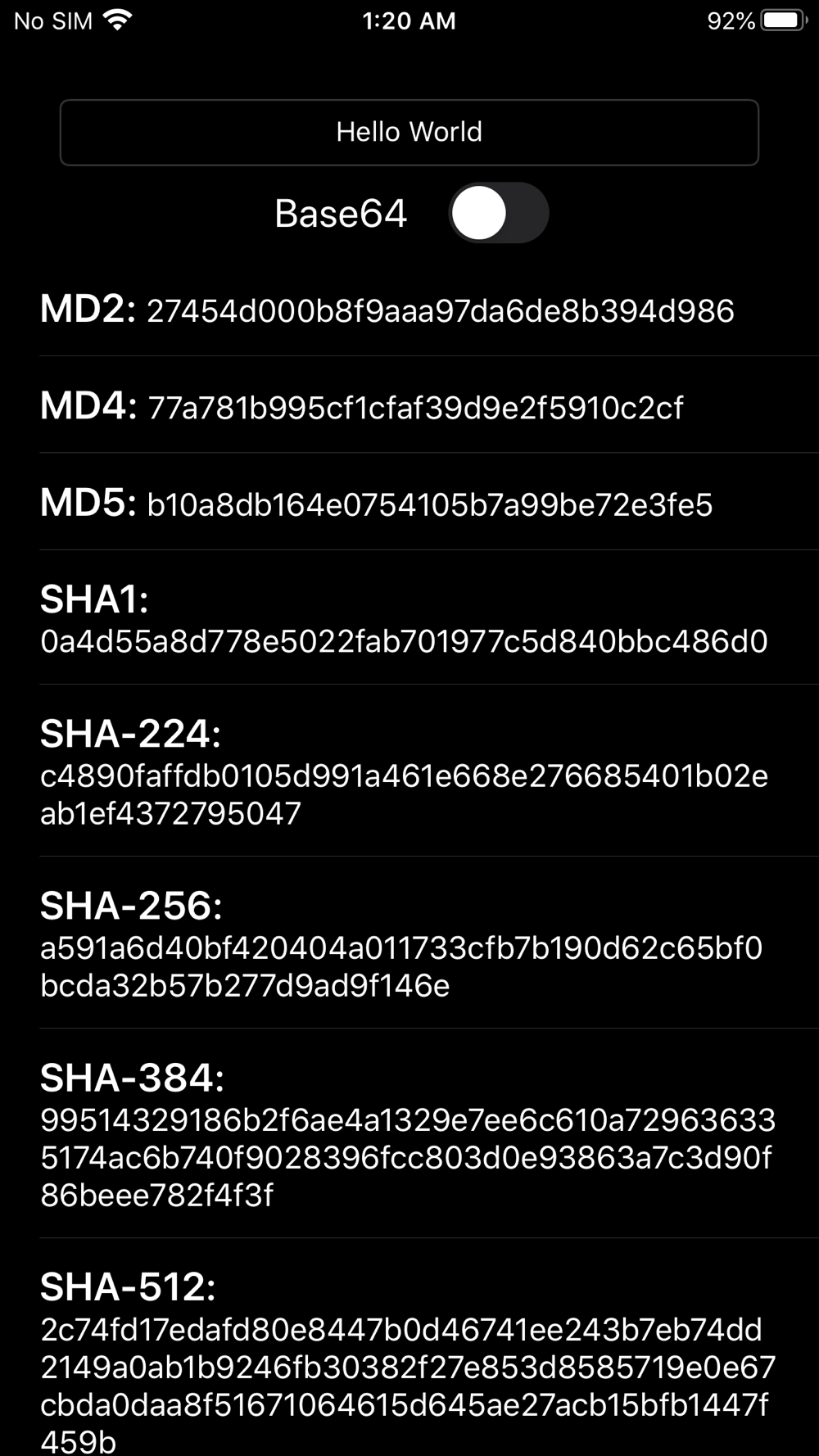 This app allows you to encrypt text into a hash function. This app is super simple to use. Simply type your text into the text field and it will update in real-time.