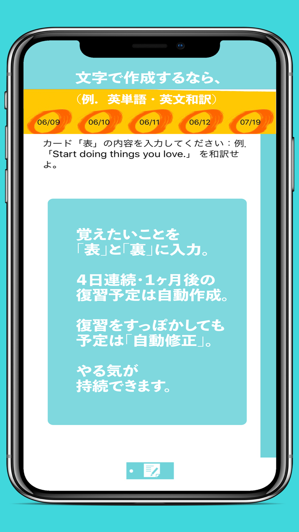 「4日連続+1ヶ月」の復習チェック機能が付いた暗記カードアプリです。