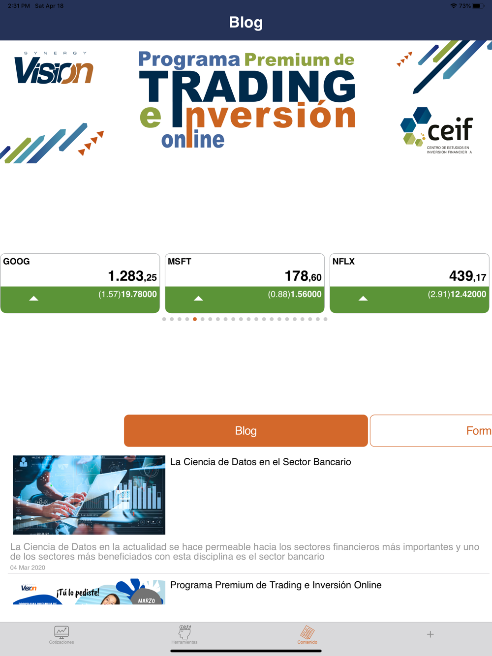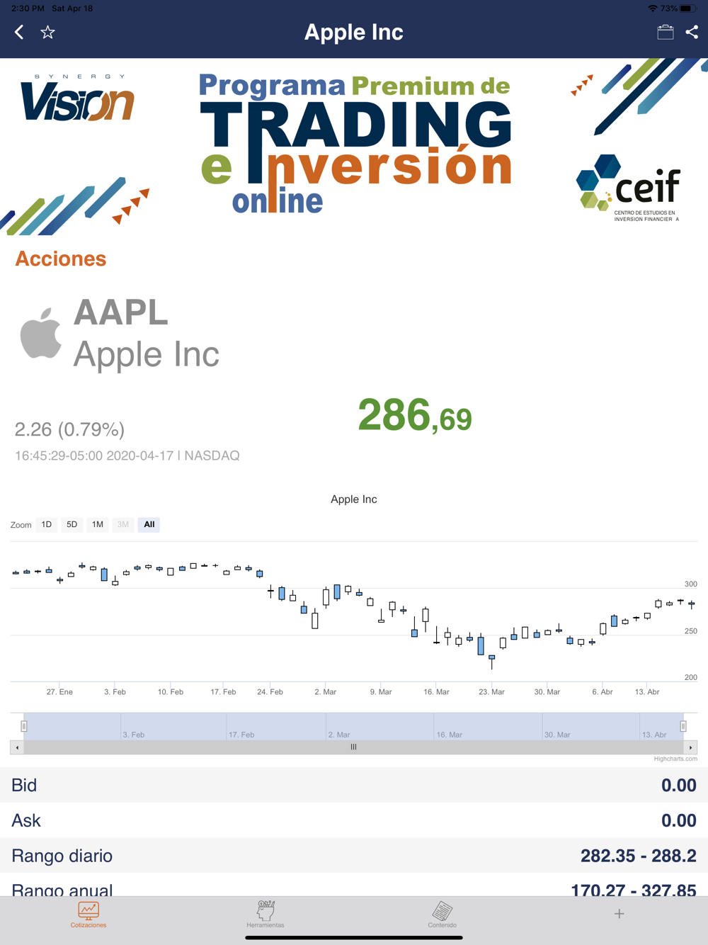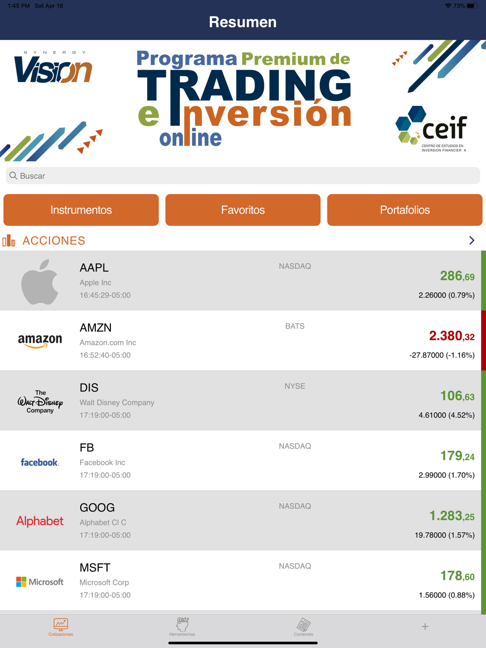 Conoce en tiempo real las cotizaciones de los bonos venezolanos, las acciones de Wall Street, materias primas, monedas y otros indicadores financieros. Recibe información sobre los últimos acontecimientos nacionales e internacionales. La aplicación de Synergy Vision te permite analizar los distintos instrumentos financieros, evaluar sus características, revisar precios, volumen y estadísticas de mercado, ofreciéndote toda la información necesaria para tomar las mejores decisiones.
