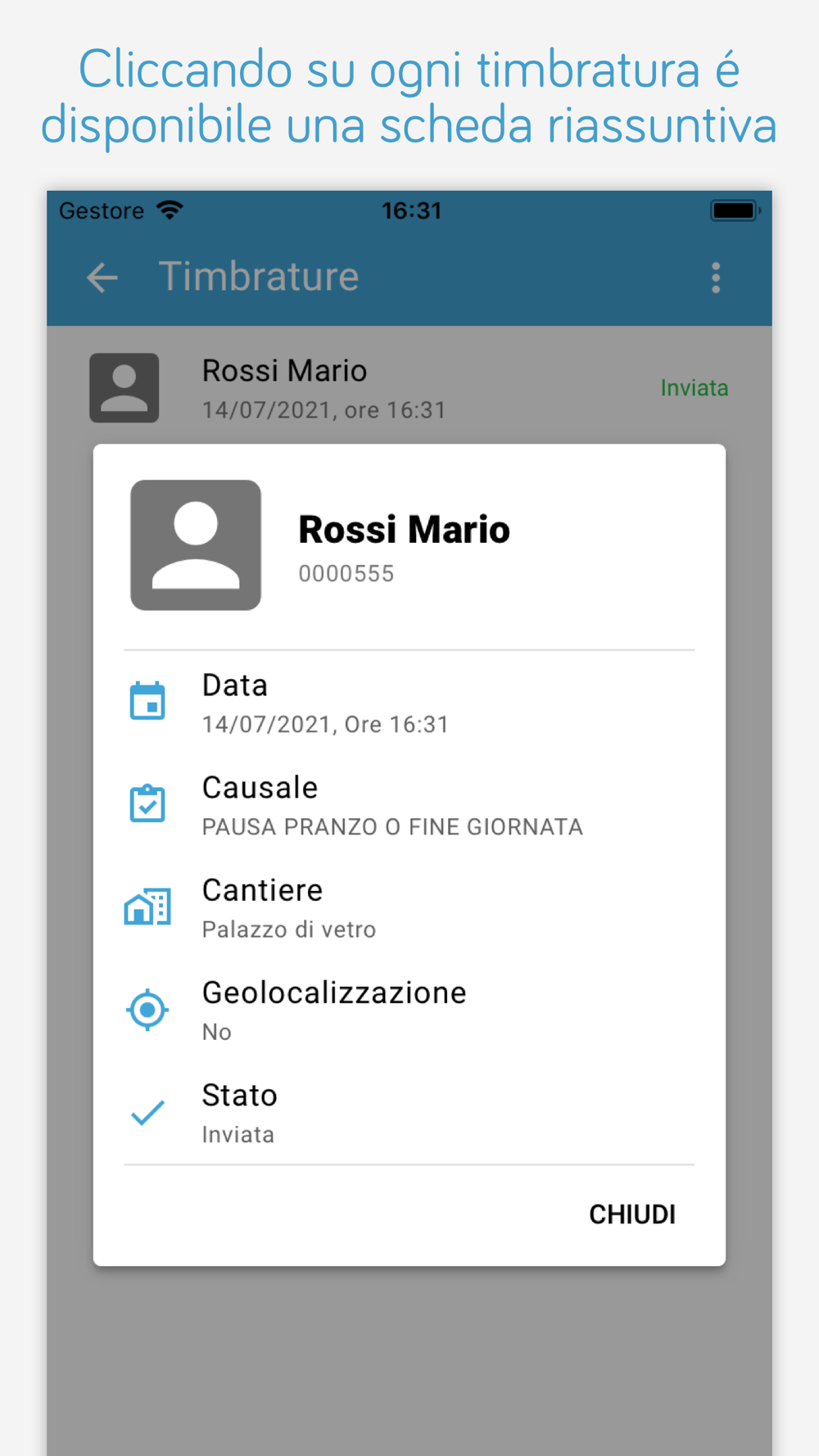 Questo consente di verificare l'effettiva presenza nel luogo di lavoro prestabilito, uno strumento fondamentale per il controllo di personale in trasferta, autisti, prestatori di servizi a domicilio (pulizie, vigilanza, assistenza domiciliare, ecc.), lavoratori in cantiere.