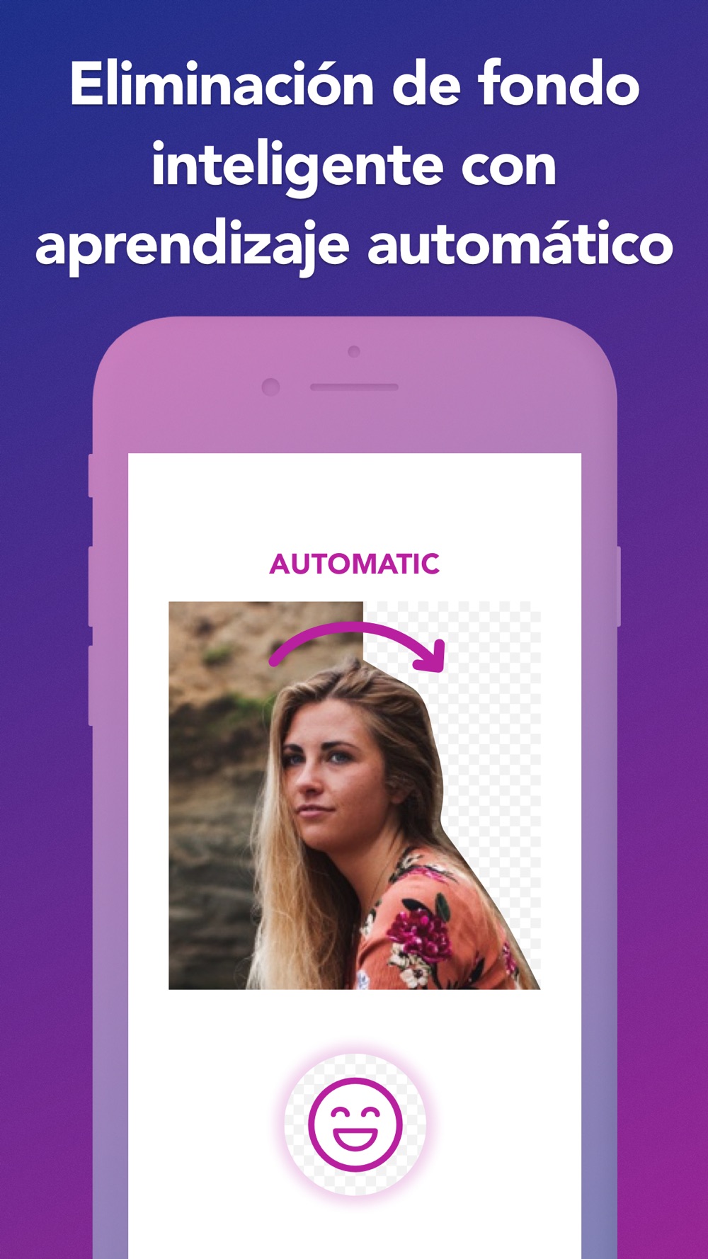 - Utiliza nuestra herramienta de eliminación de fondos inteligente con aprendizaje automático para eliminar el fondo de tus imágenes ¡con solo pulsar una vez!