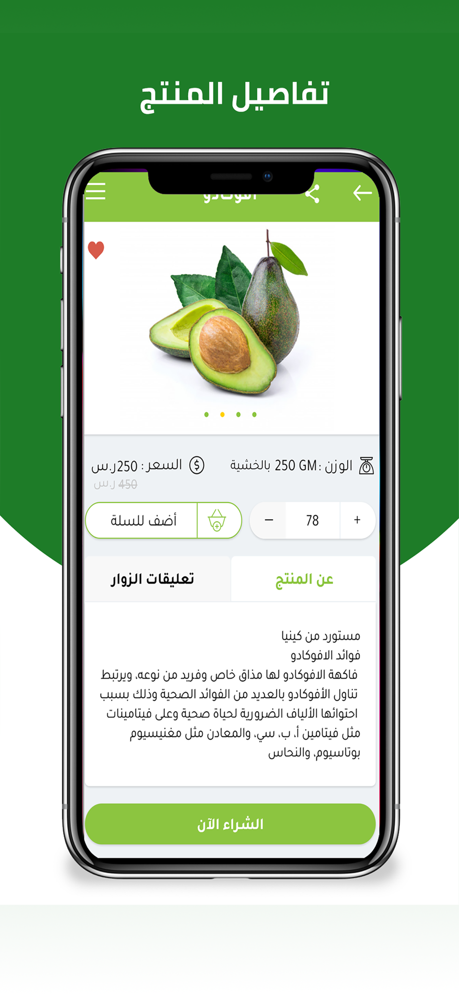 تطبيق يخدم جميع فئات المجتمع ومن كل الاجناس يهتم ويتخصص بعرض وبيع الفواكه والخضار والورقيات بكافة انواعها وبجميع الأحجام والمقاسات ، التطبيق مقسم الى جزئين فهو يستهدف طبقتين الاولى المنازل والثانية الشركات او المنشآت ولكل قسم منتجاته وقوائمه واحجامه واسعاره التي تخصه ، يقوم طالب الخدمة بالدخول والتسجيل في التطبيق عبر كود التفعيل الذي يصل الى رقمه المسجل في التطبيق ثم تُمنح له صفحة شخصية تدرج فيها بياناته وتفاصيل حسابه من طلبات وبيانات شخصية ، يقوم العضو بطلب المنتجات واضافتها الى سلة الشراء الخاصة به ثم يحدد طريقة الدفع وتاريخ التوصيل ثم يتمم الشراء ، سيصل الطلب الى ادارة التطبيق وبدورها تقوم بإسناد الطلب الى احد المناديب المتواجدين ، يصل اشعار الى المندوب بأنه ثمة طلب جديد قبل وصله فيقوم بالدخول الى صفحته الشخصية لمتابعة الطلب وتوصيله ، بعد التوصيل يقوم المندوب بانهاء الطلب ، وتلقائيا يتم تسجيل الطلب عبر النظام وفي داخل لوحة التحكم
