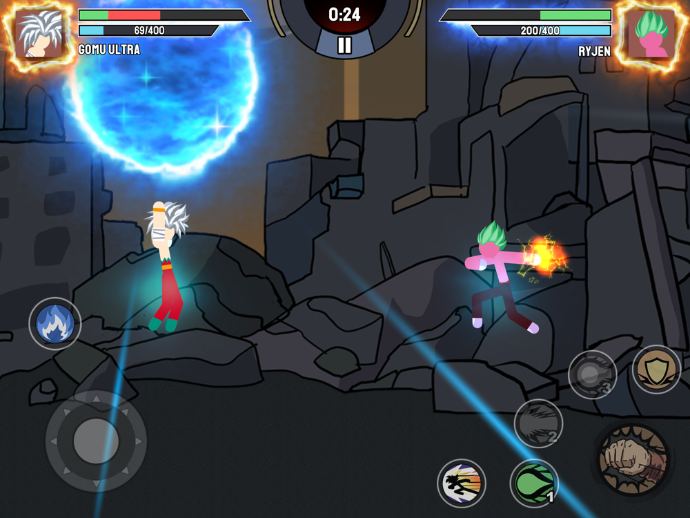 Stick Warriors has the most basic control ever! you just need to dodge, jump, power your ki, become ultra instinct and Z warriors super Hero fight against invaders. Use ultimate power, ultra shooting ball skill will be kill all invaders in shadow.