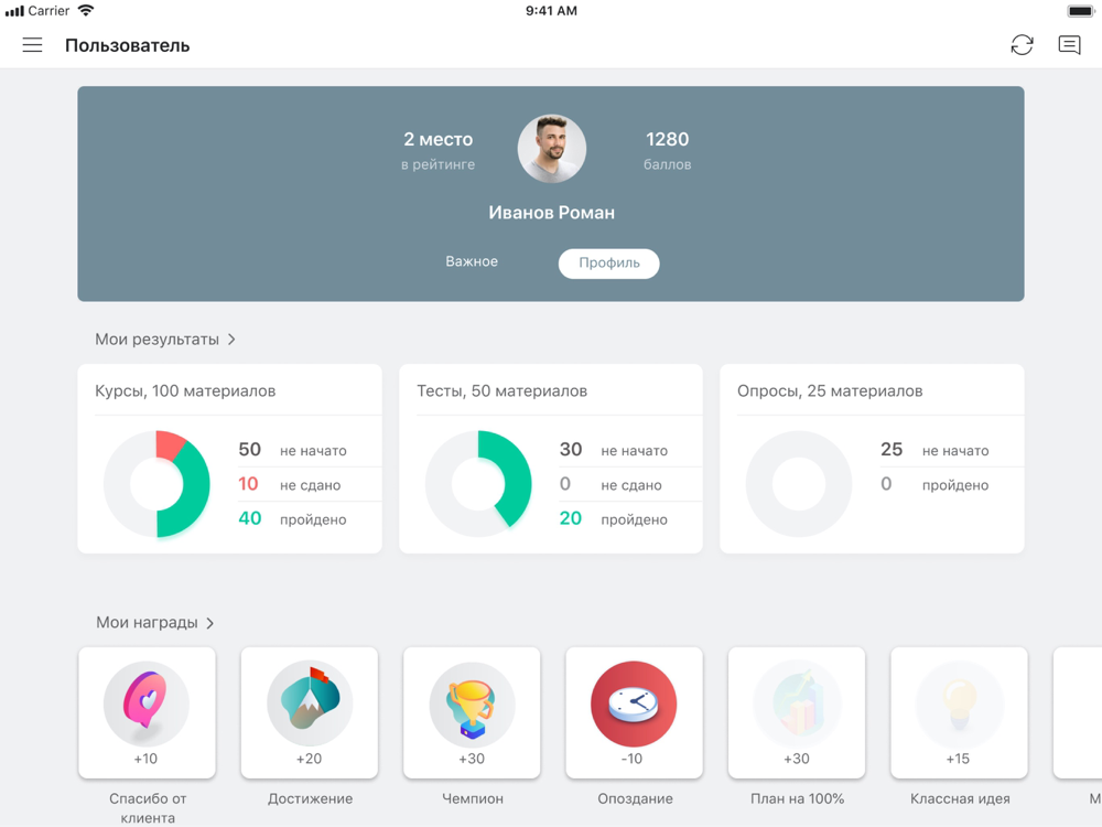 - полезная статистика и прозрачная бальная система оценок обучения