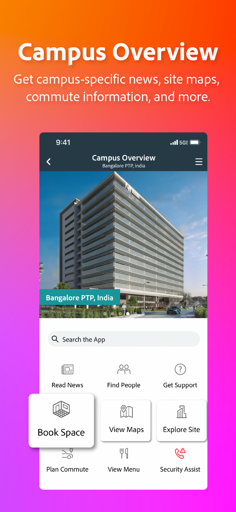 Adobe Life is a smart campus mobile app that helps you stay productive, connected, and well throughout the day – whether at the Adobe office or at home.