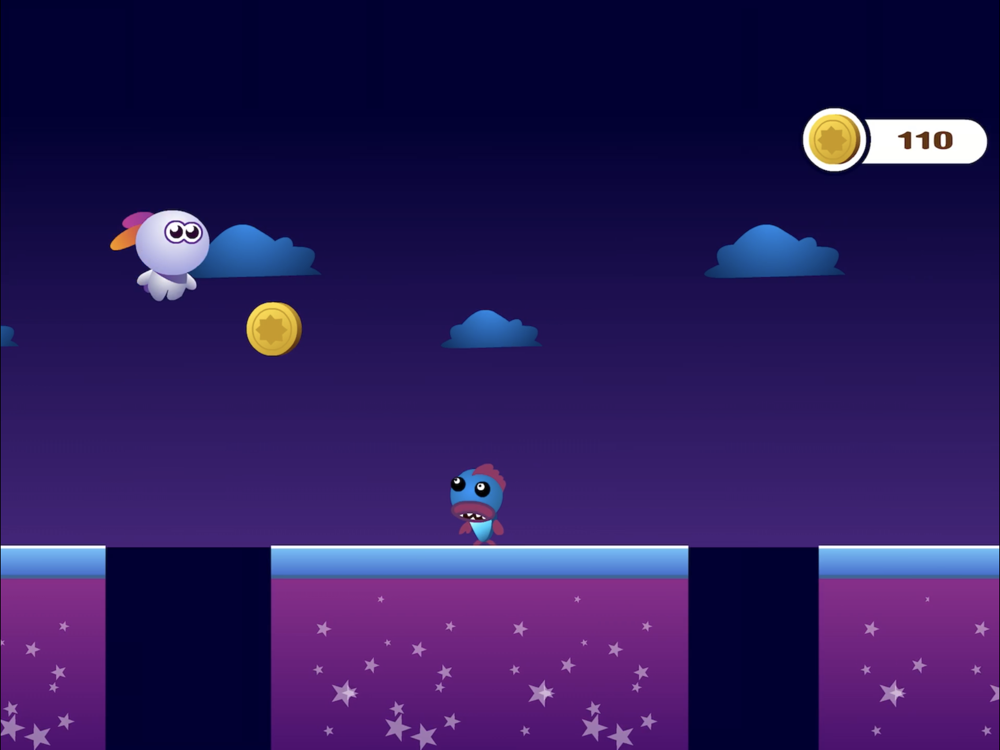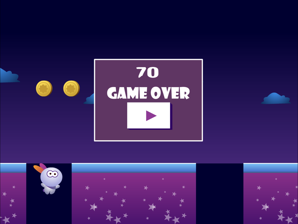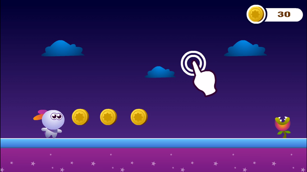 兔兔跳跳小游戏,点击屏幕任何位置即可让兔兔跳跃,跳跃大嘴花、鱼怪和黑色陷阱,到达宇宙飞船的最后终点,看谁吃的金币够多哦!
