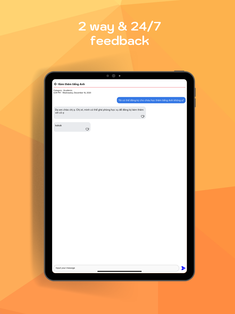 Feedback: send feedback directly to the school and get feedback.
