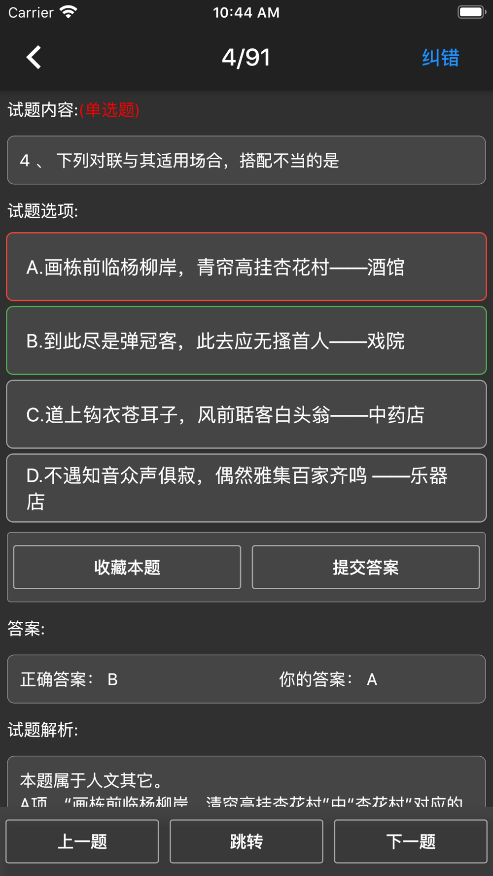 试题纠错: 如果您觉得我们的试题有不正确的地方,可以在通过纠错功能告诉我们,我们进行试题修正后,用户通过更新对试题进行纠错