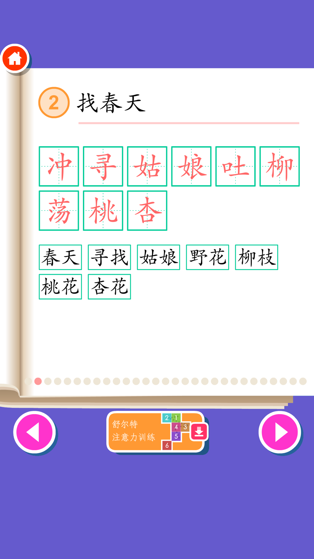 内容与最新人教版语文课本同步,适合二年级学生,用于网课作业或小学语文练习写字的学习软件。
