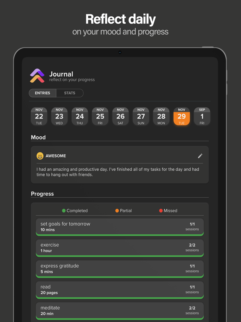 - Journal your daily progress and mood, and unlock in-depth habit statistics to gain profound insights into your personal growth journey. Reflect on past successes to uncover your unique formula for habit mastery.