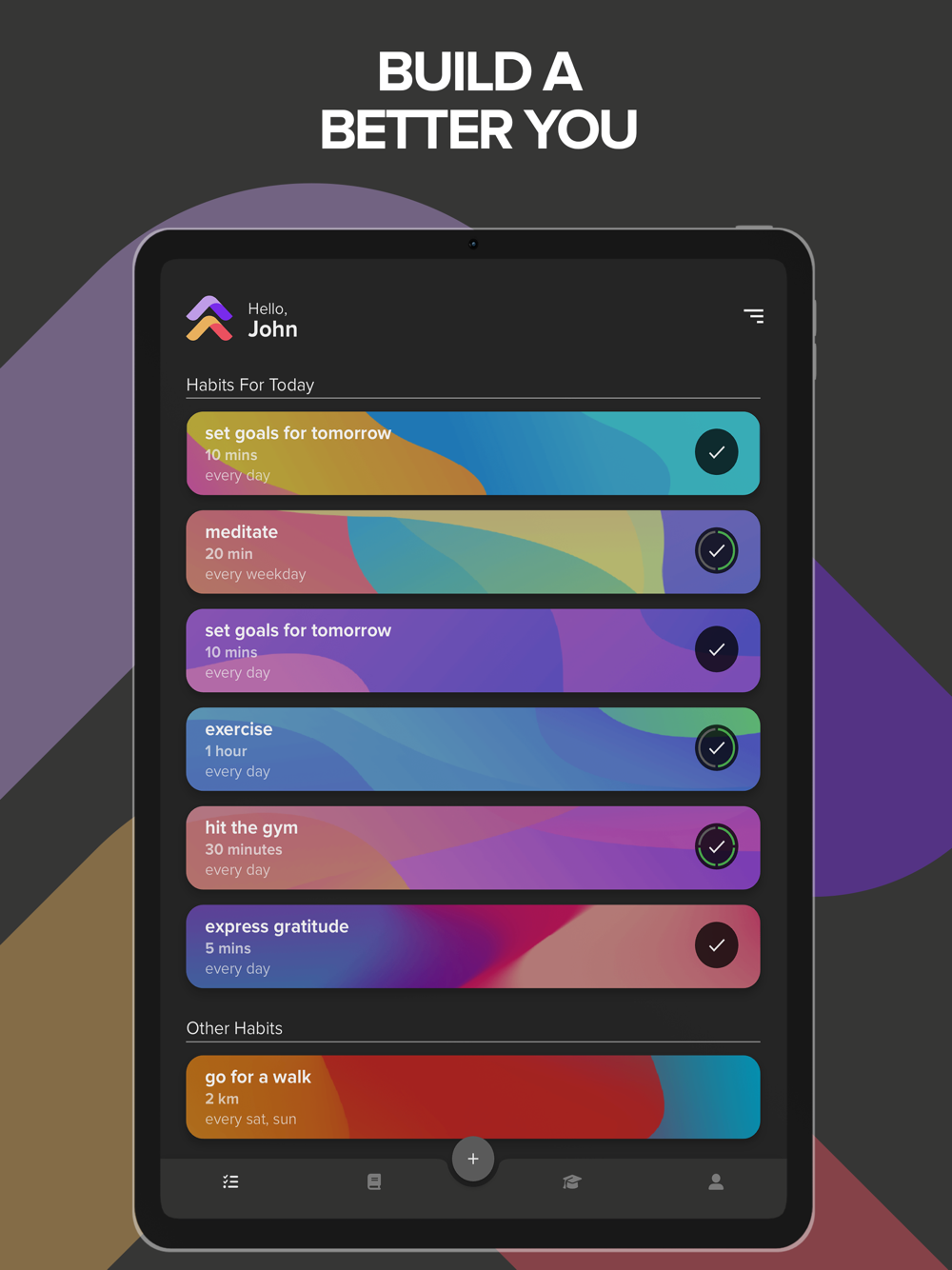 lvlup takes you on a personalized journey of gradual habit development. Get ready for daily reminders and insightful self-reflection tools that'll keep you motivated every step of the way.