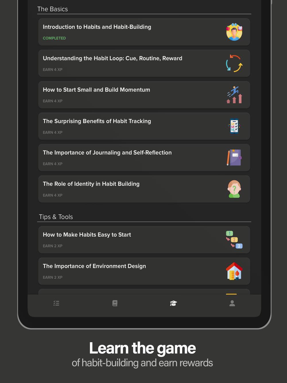 - Stay motivated by gamifying your progress – as you conquer your habits unlock rewards like avatars, titles, and more.